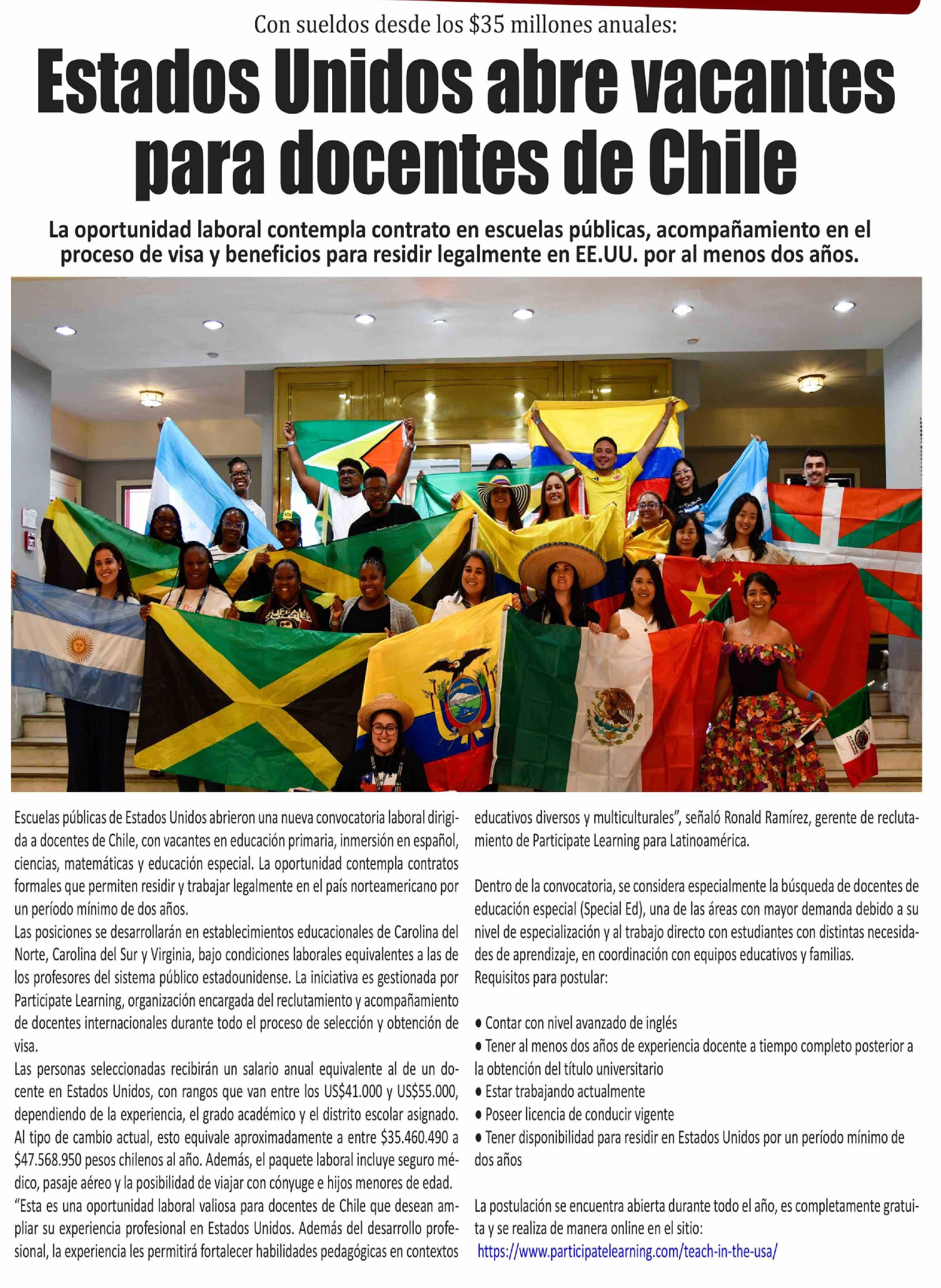 Estados Unidos abre vacantes para docentes de Chile