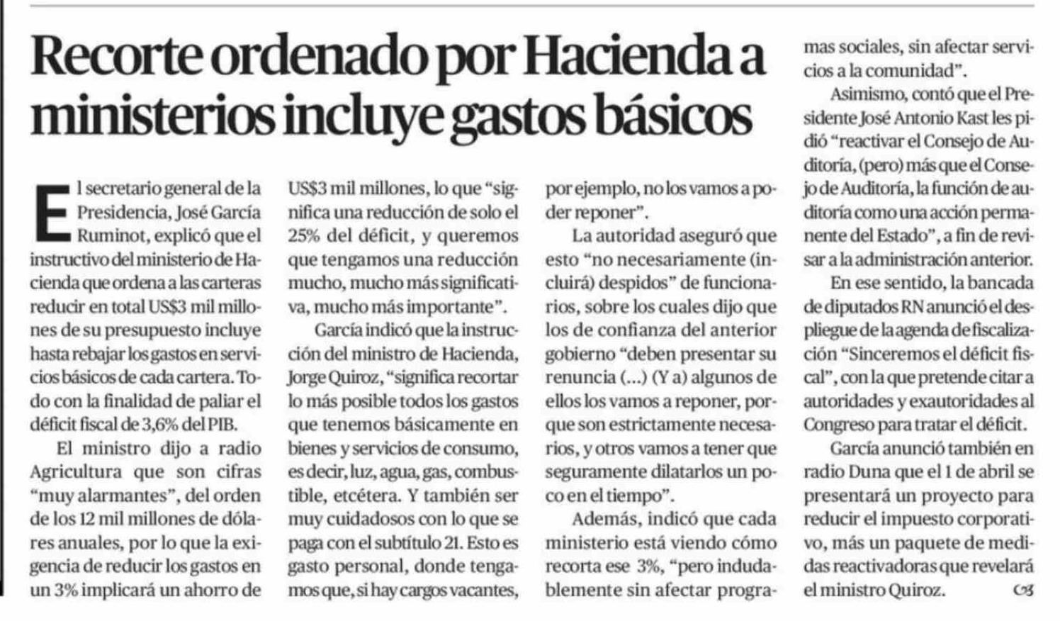 Recorte ordenado por Hacienda a ministerios incluye gastos básicos