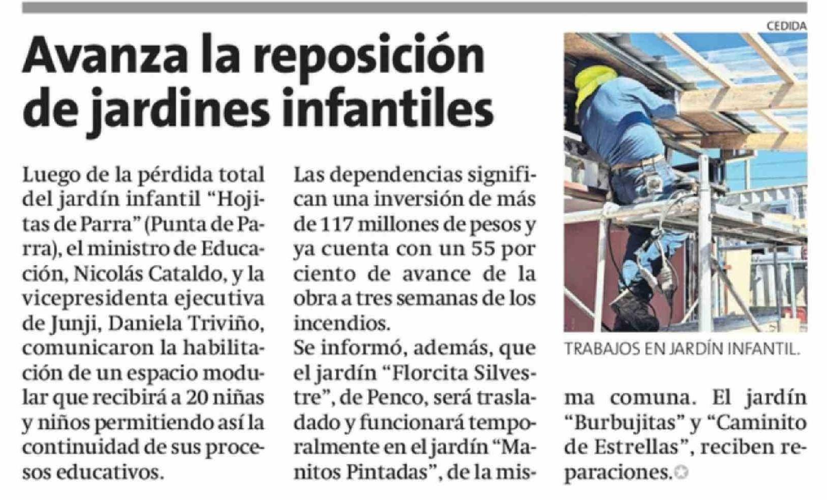 Avanza la reposición de jardines infantiles