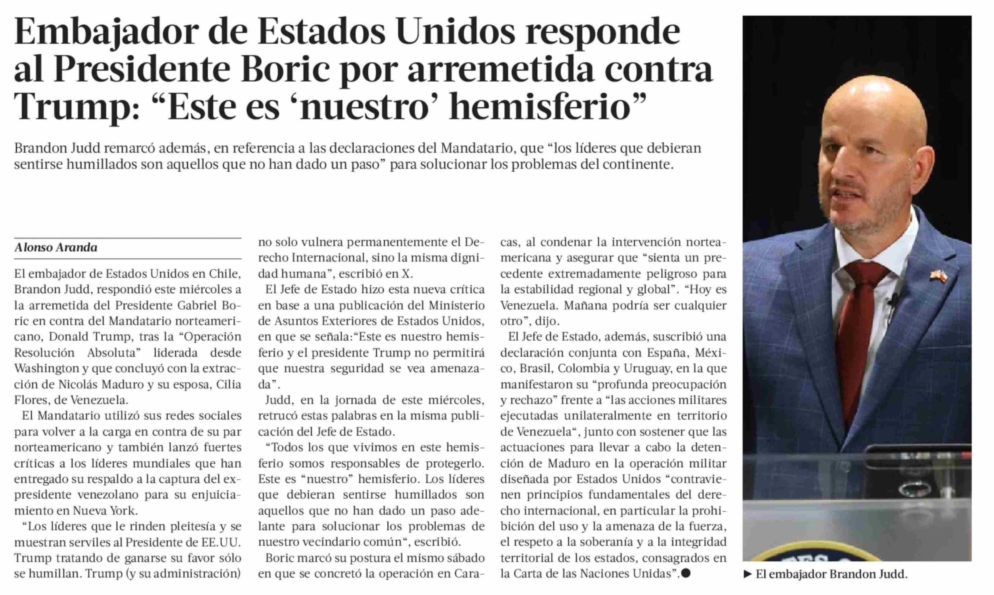 Embajador de Estados Unidos responde al Presidente Boric por arremetida contra Trump: "Este es 'nuestro' hemisferio"