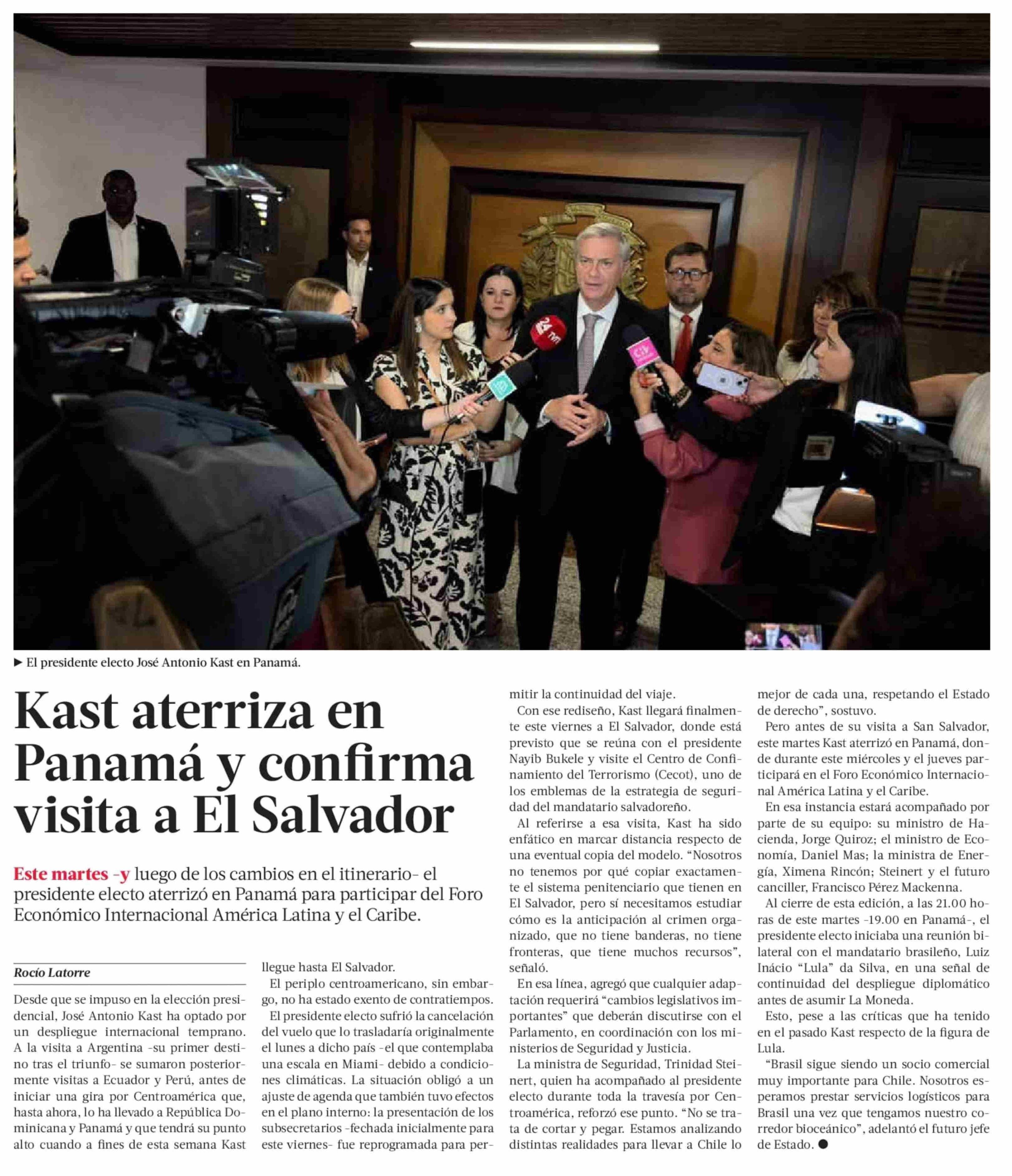Kast aterriza en Panamá y confirma visita a El Salvador