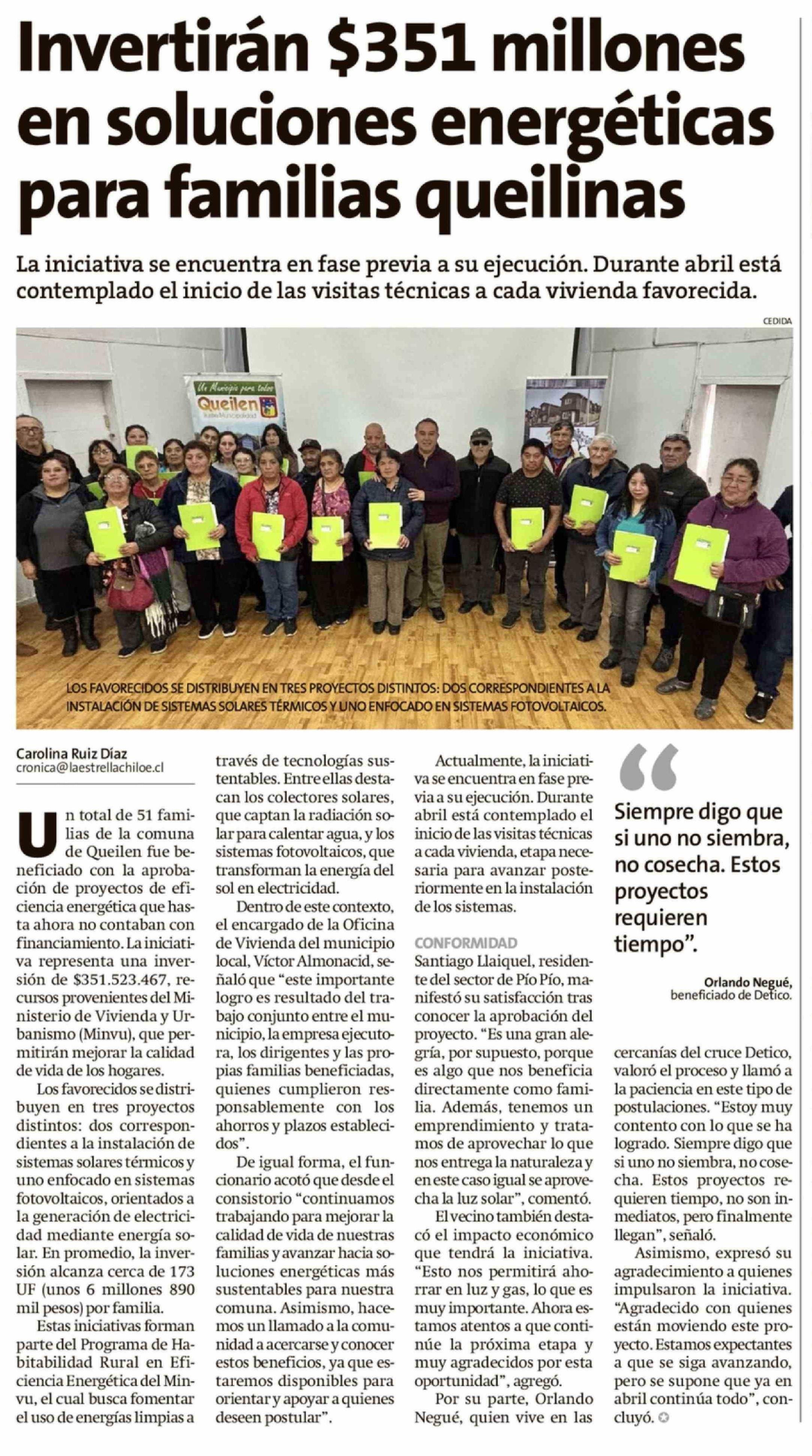 Invertirán $351 millones en soluciones energéticas para familias queilinas
