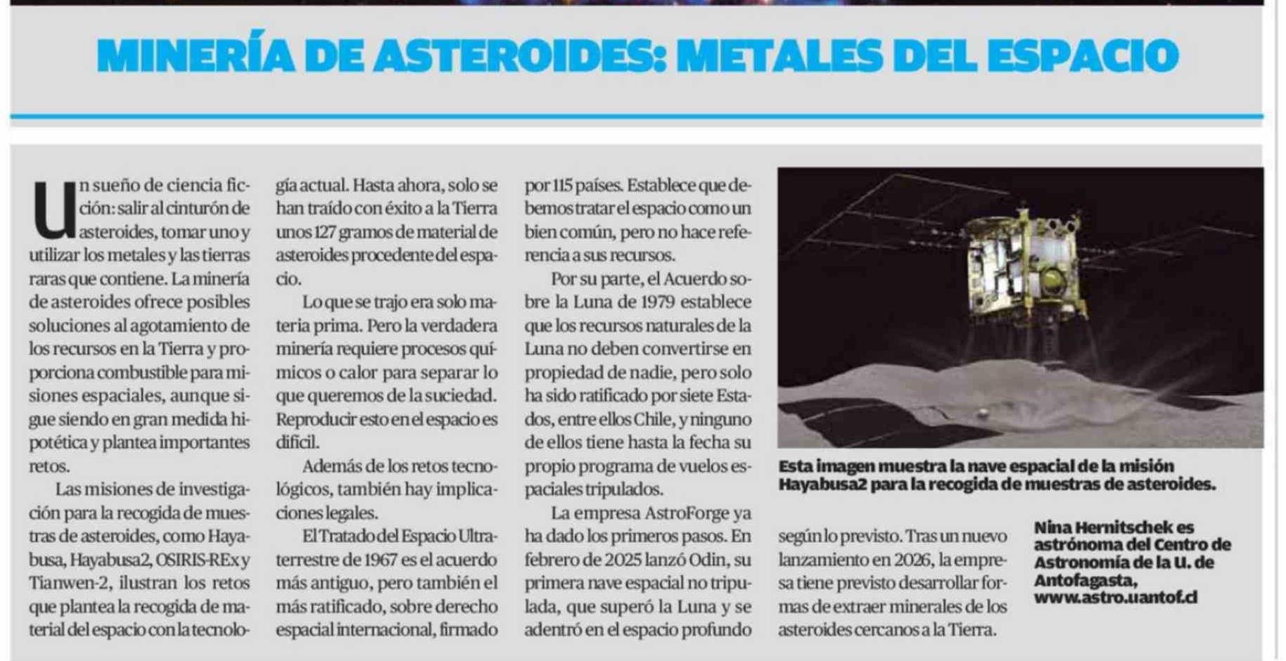 Título: asteroides, tomar uno y utilizar los metales y las tierras raras que contiene. La minería de asteroides ofrece posibles soluciones al agotamiento de los recursos en la Tierra y proporciona combustible para misiones espaciales, aunque sigue siendo en gran medida hipotética y plantea importantes retos