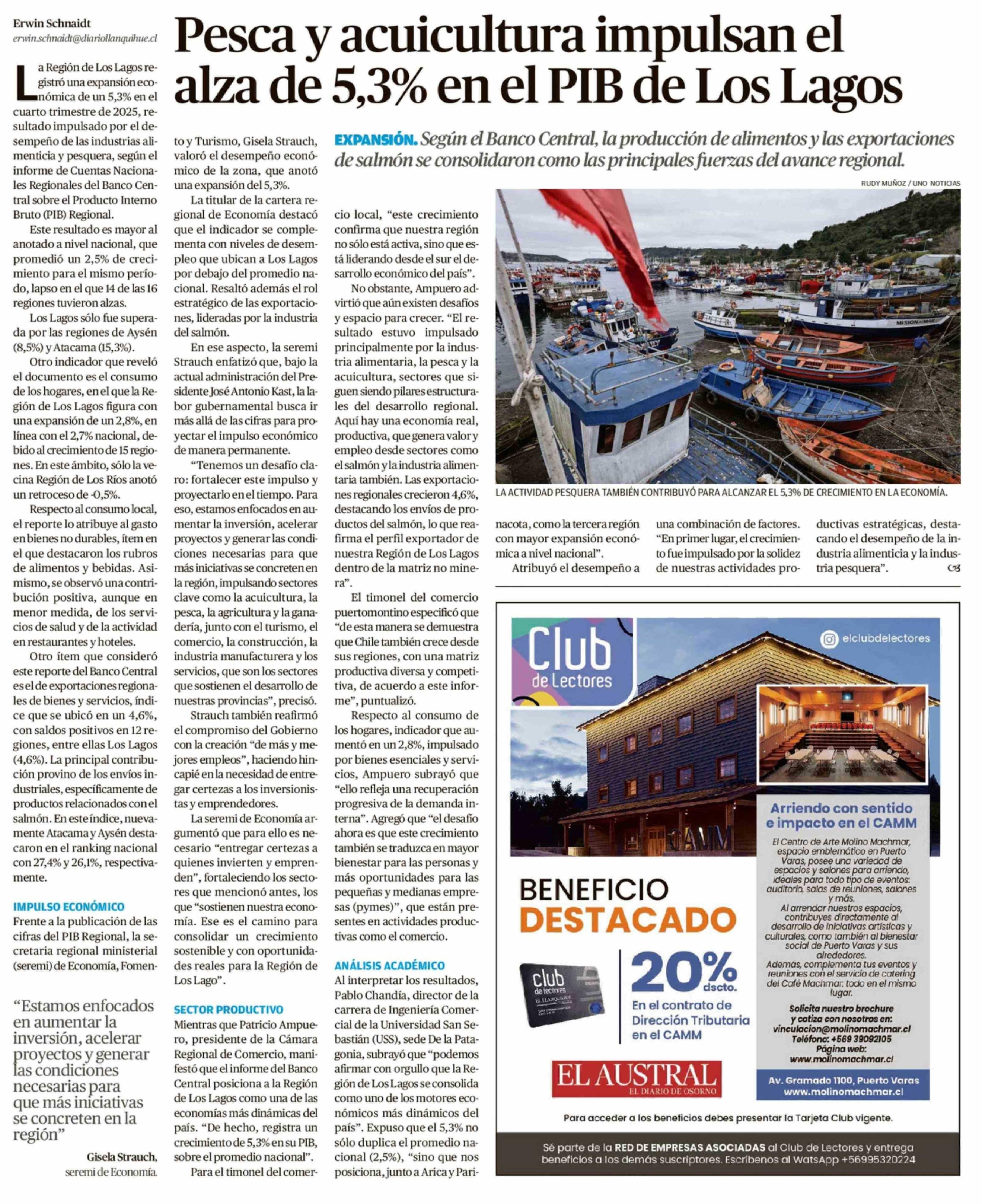 Pesca y acuicultura impulsan el alza de 5,3% en el PIB de Los Lagos