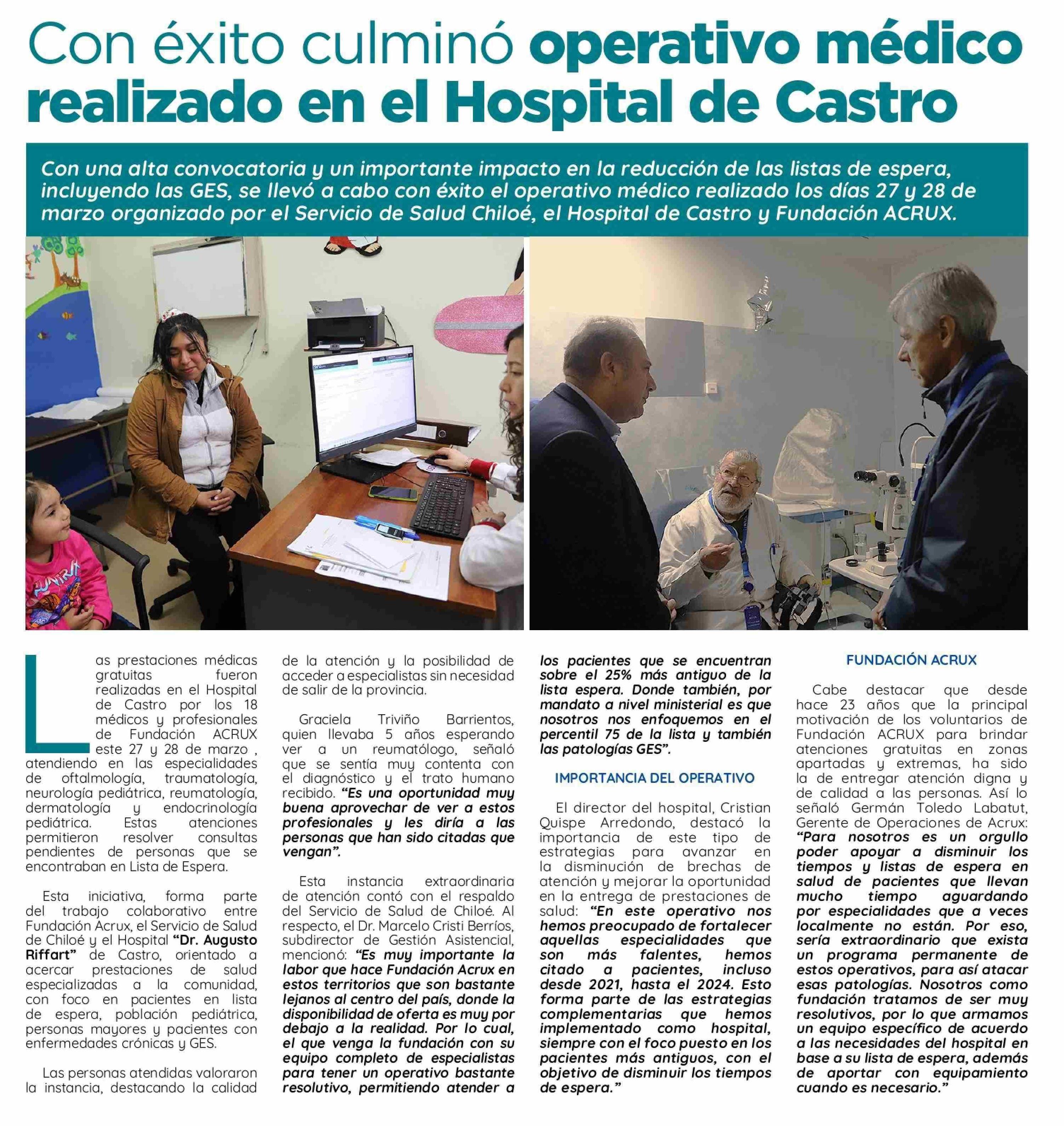 Con éxito culminó operativo médico realizado en el Hospital de Castro