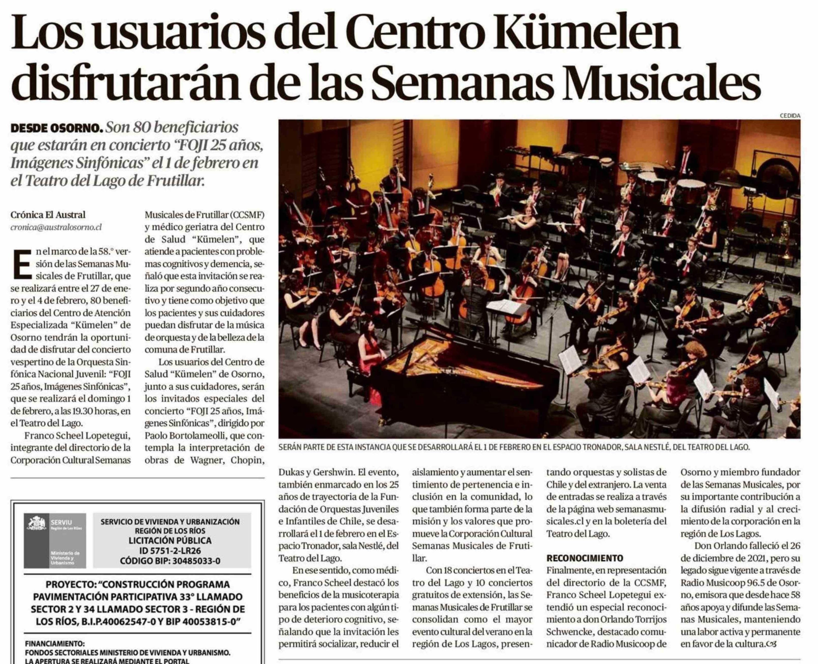 Los usuarios del Centro Kümelen disfrutarán de las Semanas Musicales