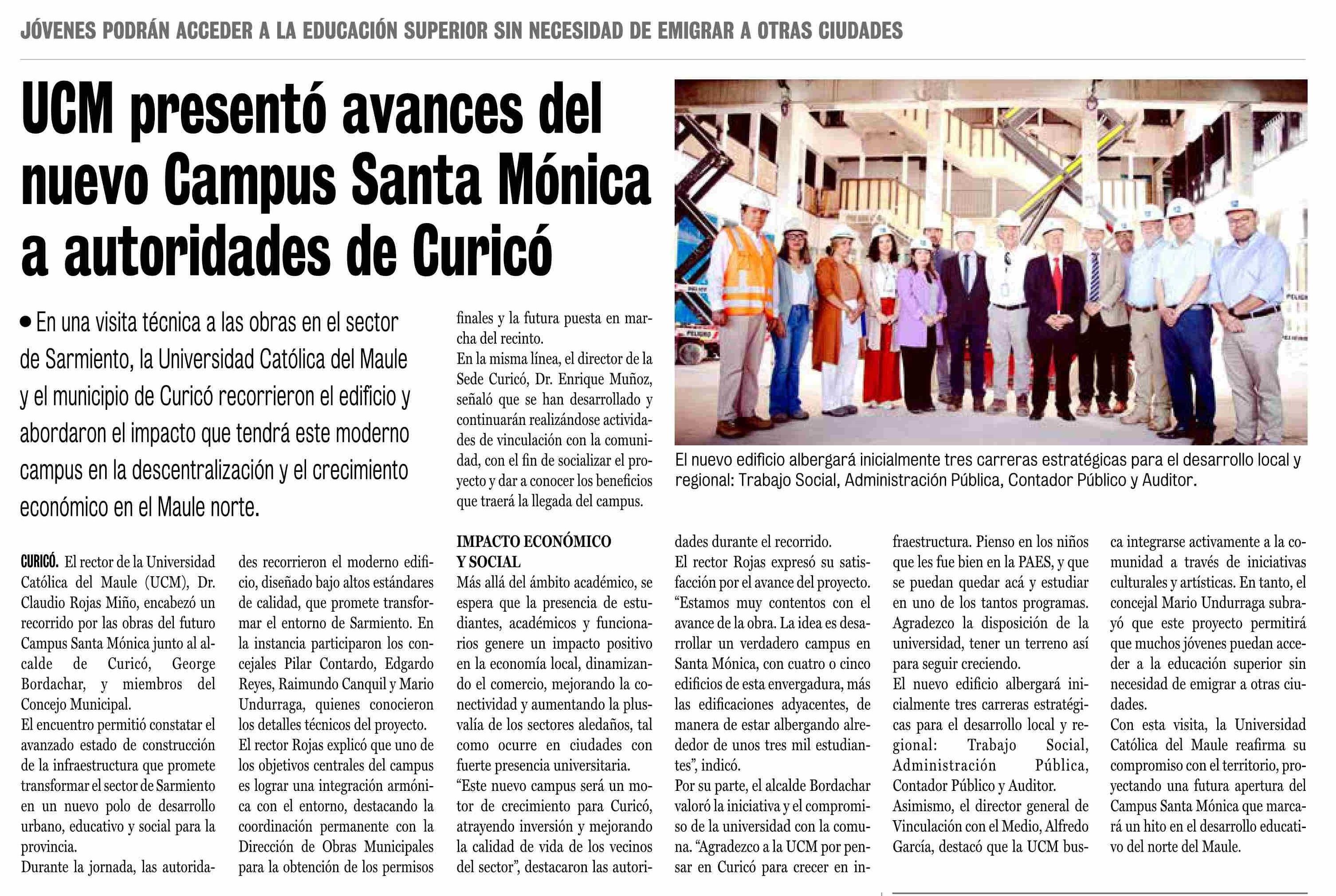 UCM presentó avances del nuevo Campus Santa Mónica a autoridades de Curicó