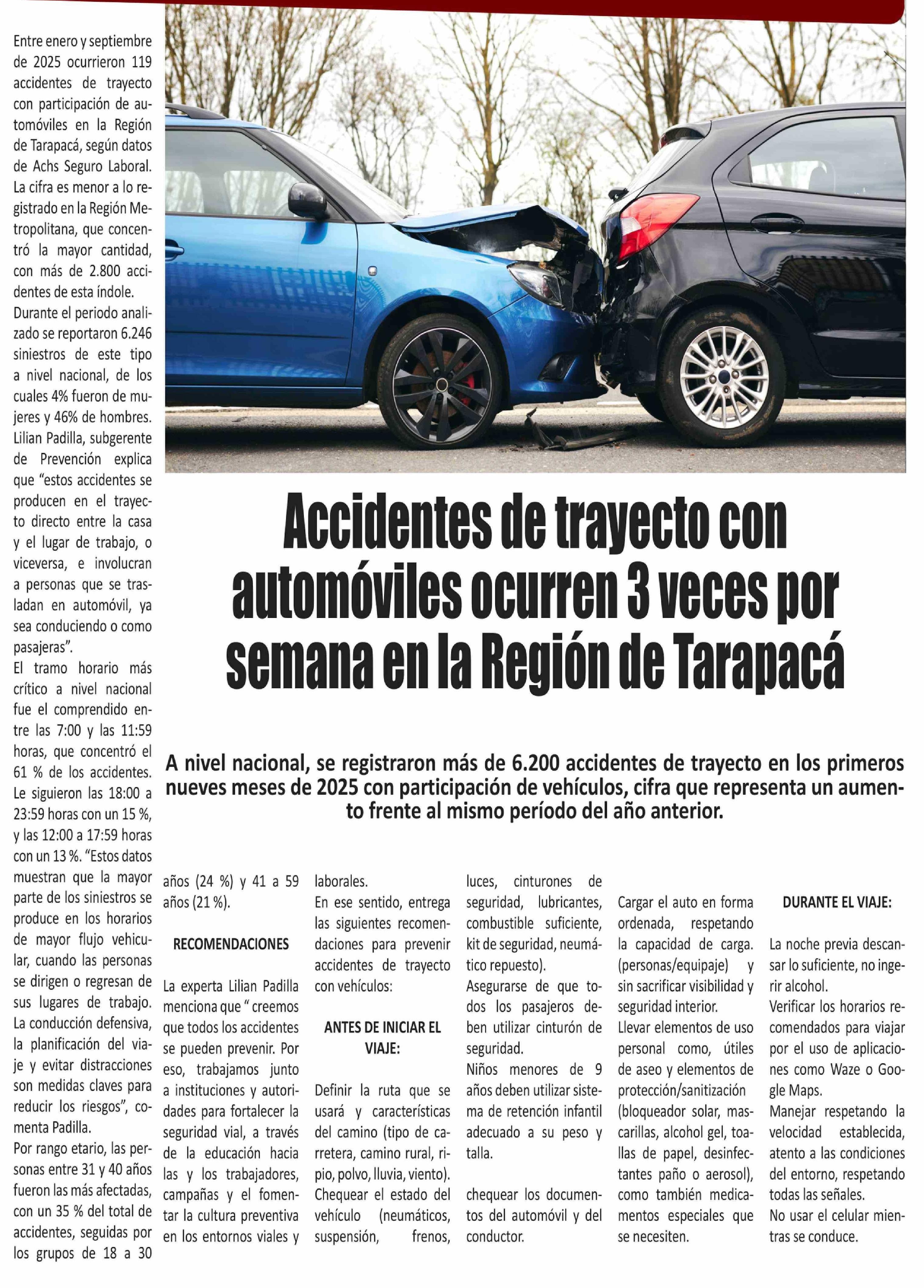 Accidentes de trayecto con automóviles ocurren 3 veces por semana en la Región de Tarapacá