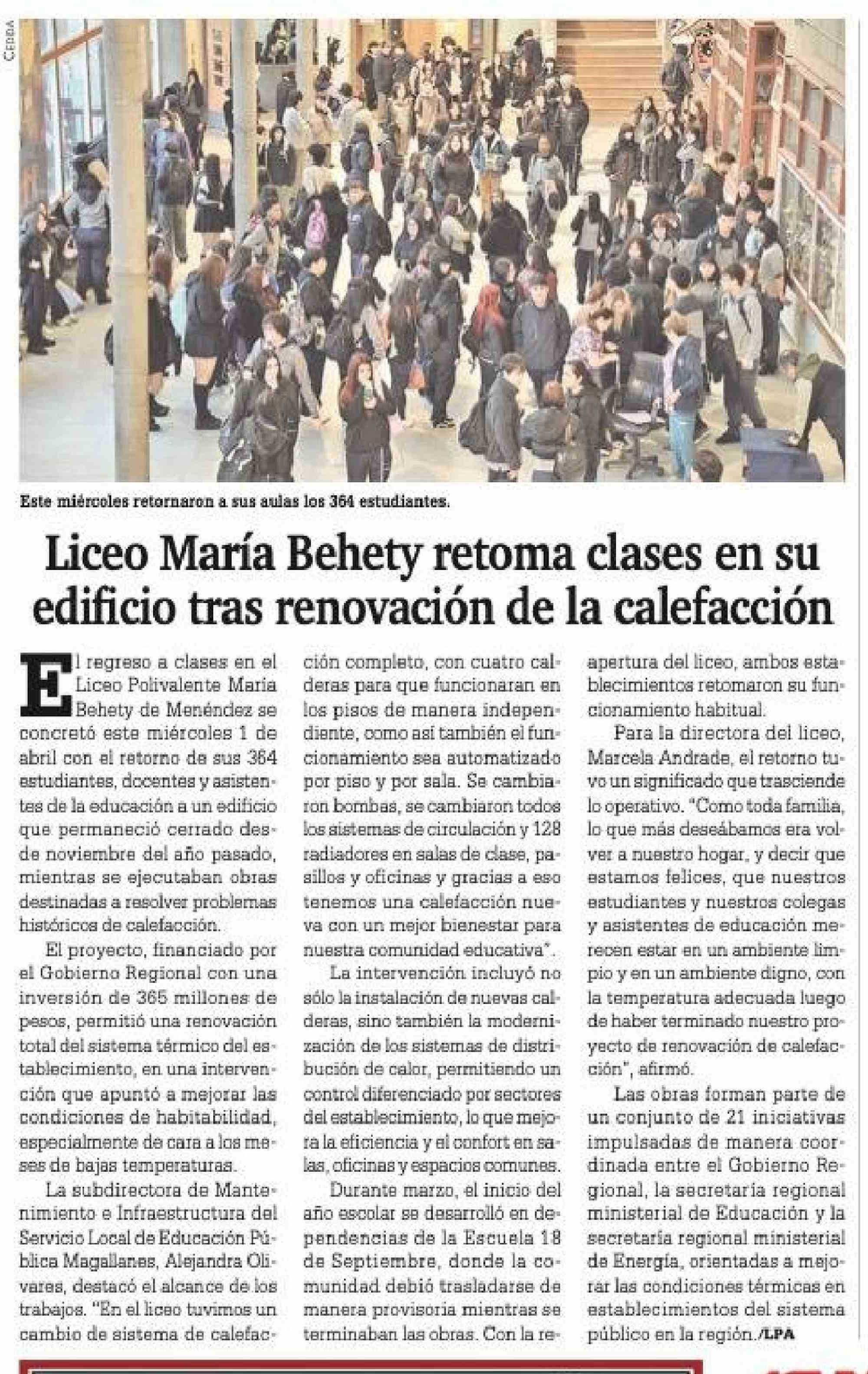 Liceo María Behety retoma clases en su edificio tras renovación de la calefacción