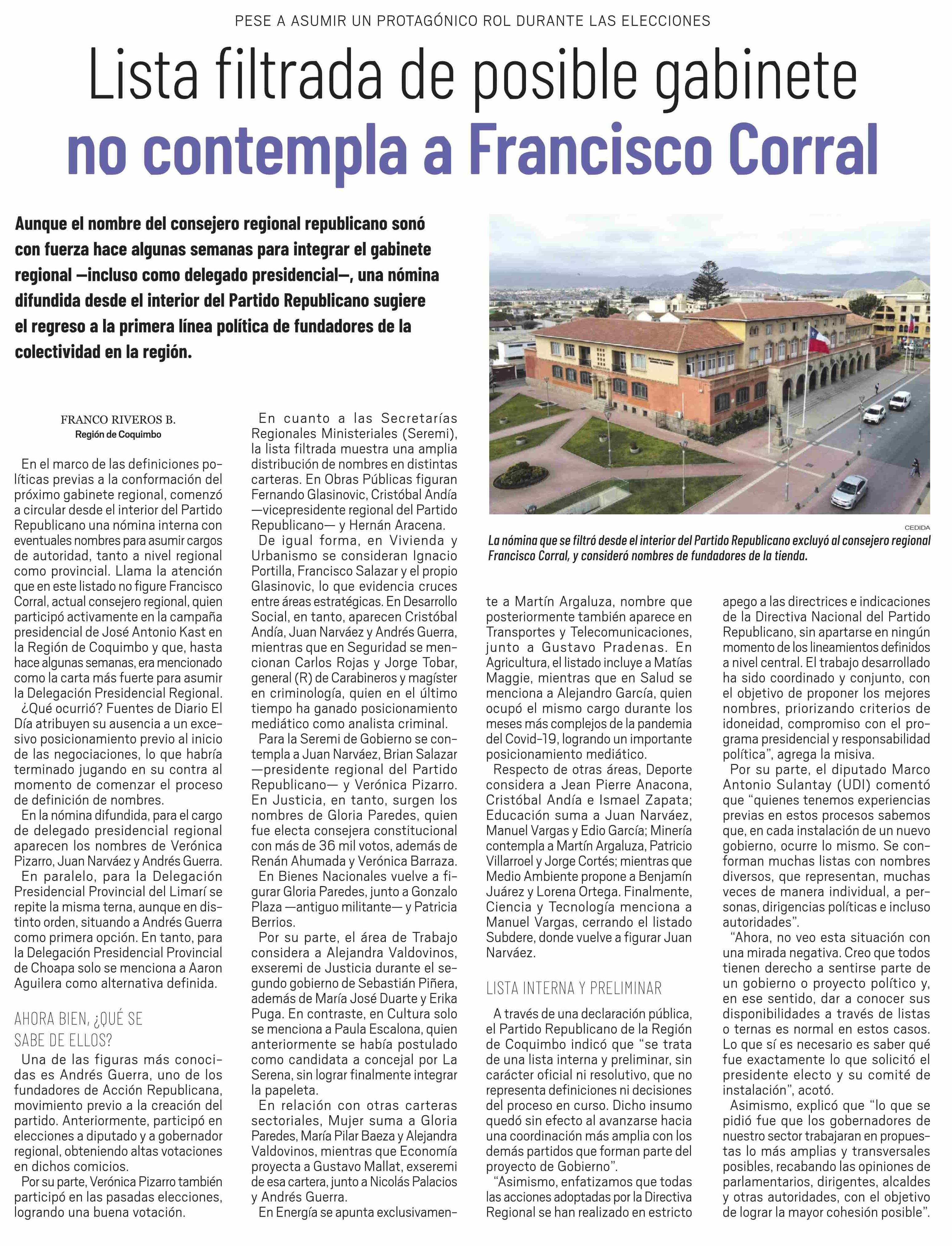 Lista filtrada de posible gabinete no contempla a Francisco Corral