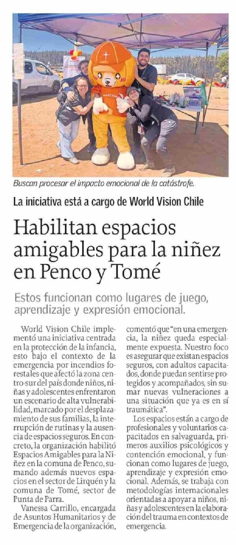 Habilitan espacios amigables para la niñez en Penco y Tomé