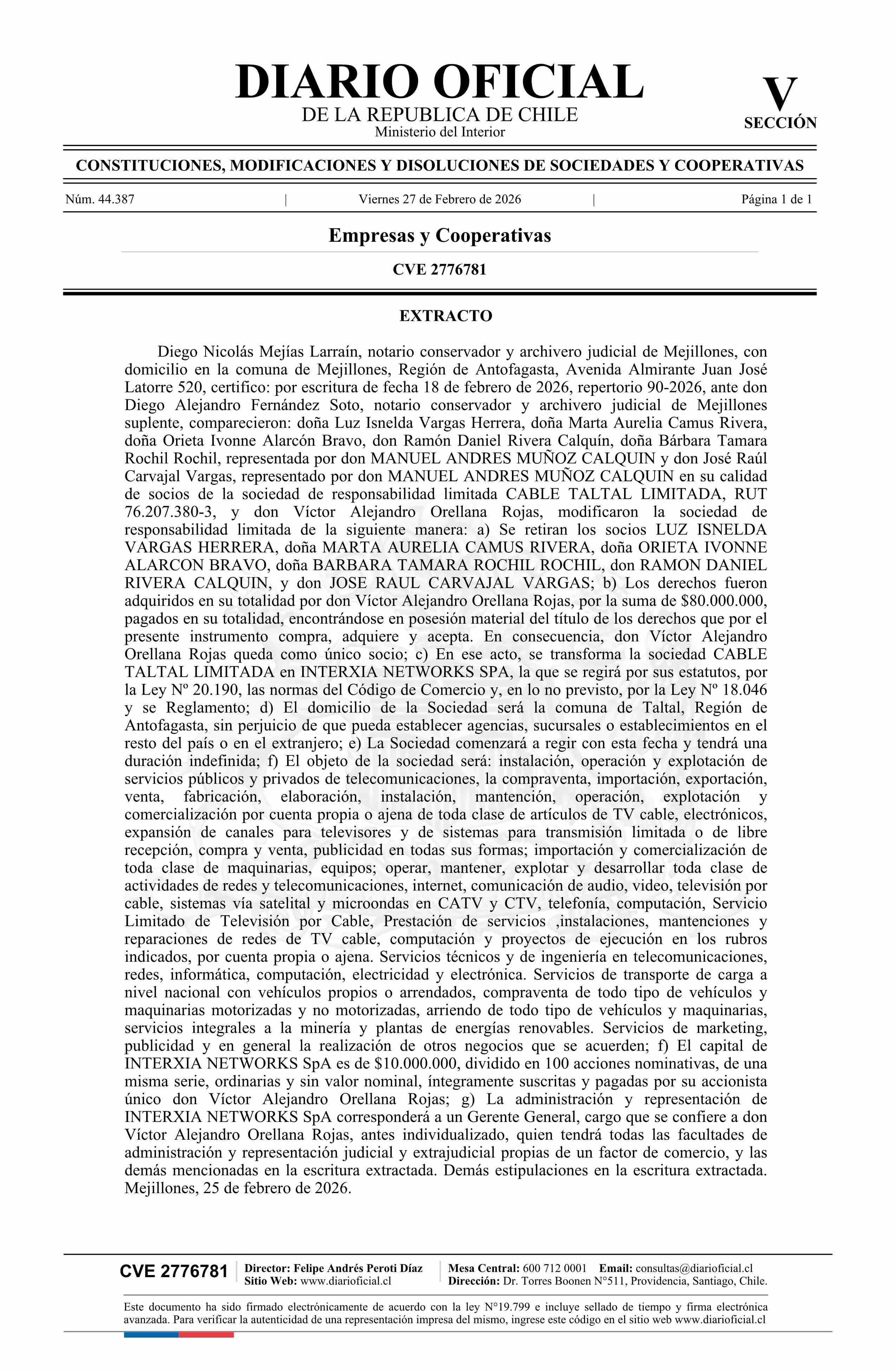 Diario Oficial Edición Electrónica (Diario Oficial de Chile - 5 Empresas Y Cooper)