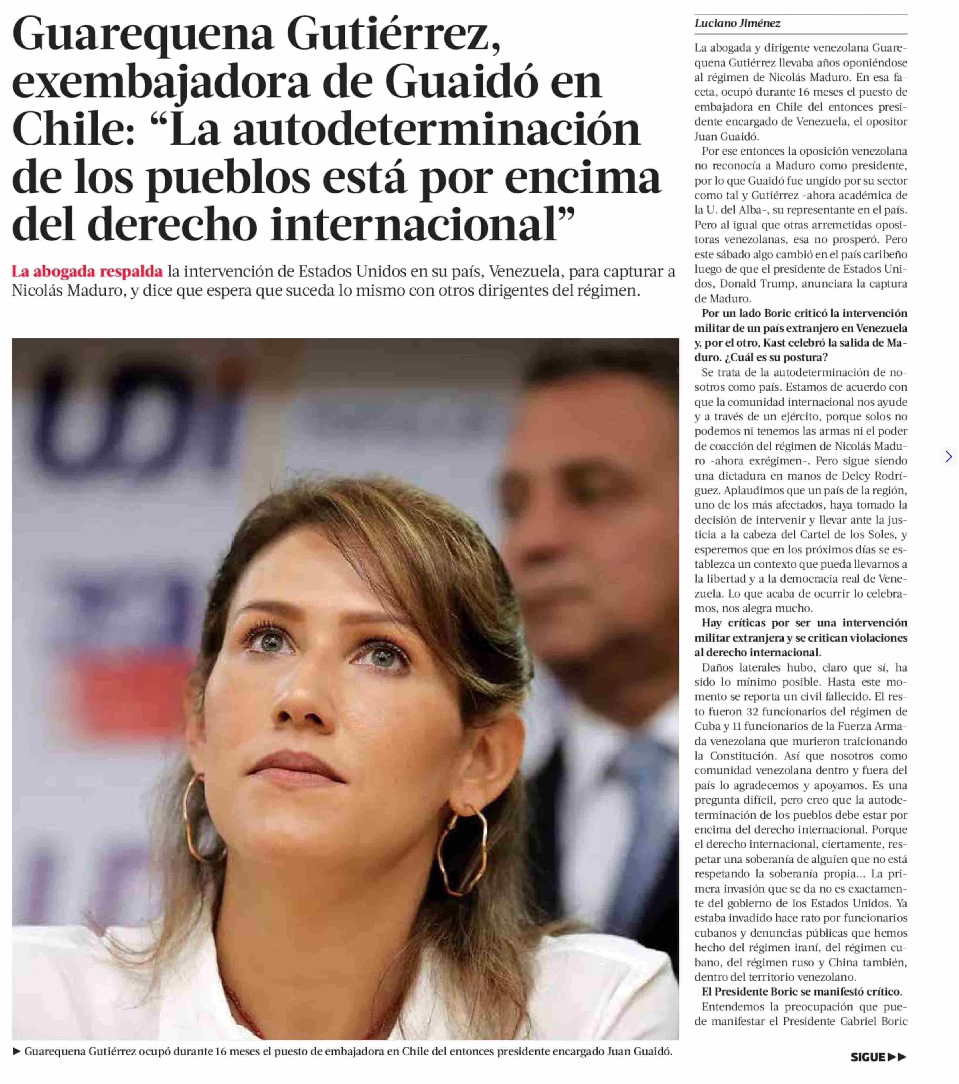 Guarequena Gutiérrez, exembajadora de Guaidó en Chile: "La autodeterminación de los pueblos está por encima del derecho internacional"