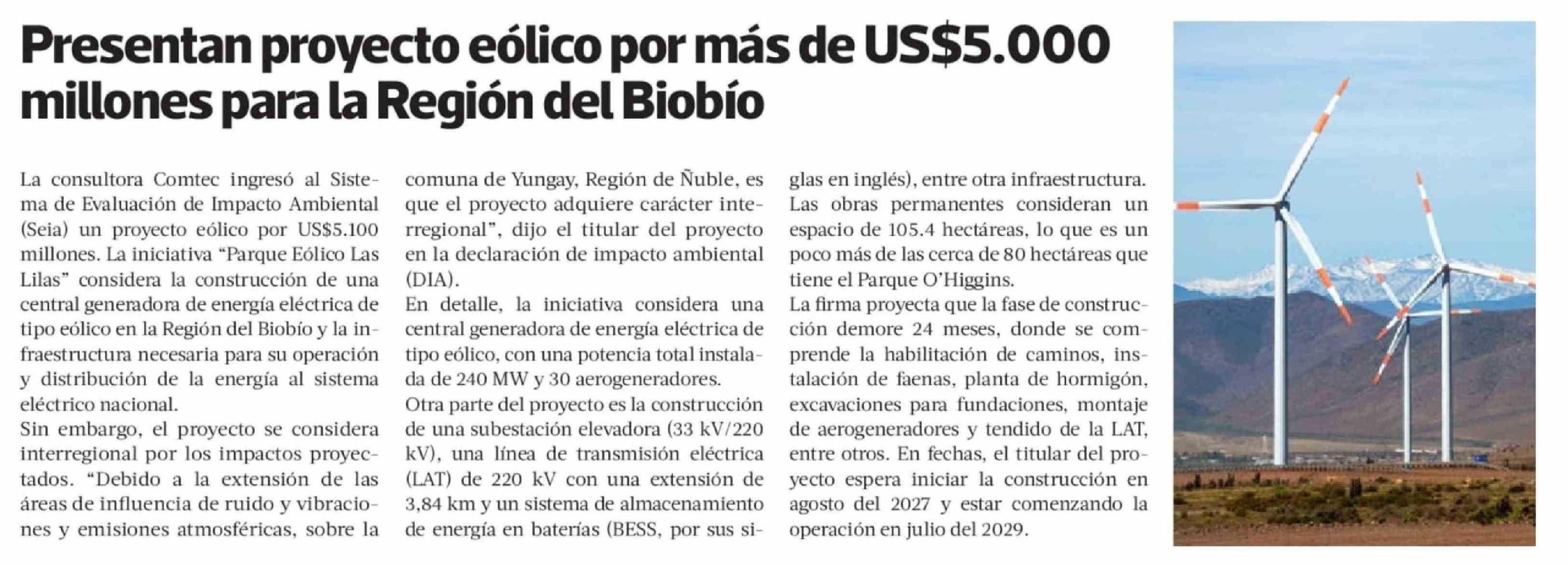 Presentan proyecto eólico por más de US$5.000 millones para la Región del Biobío