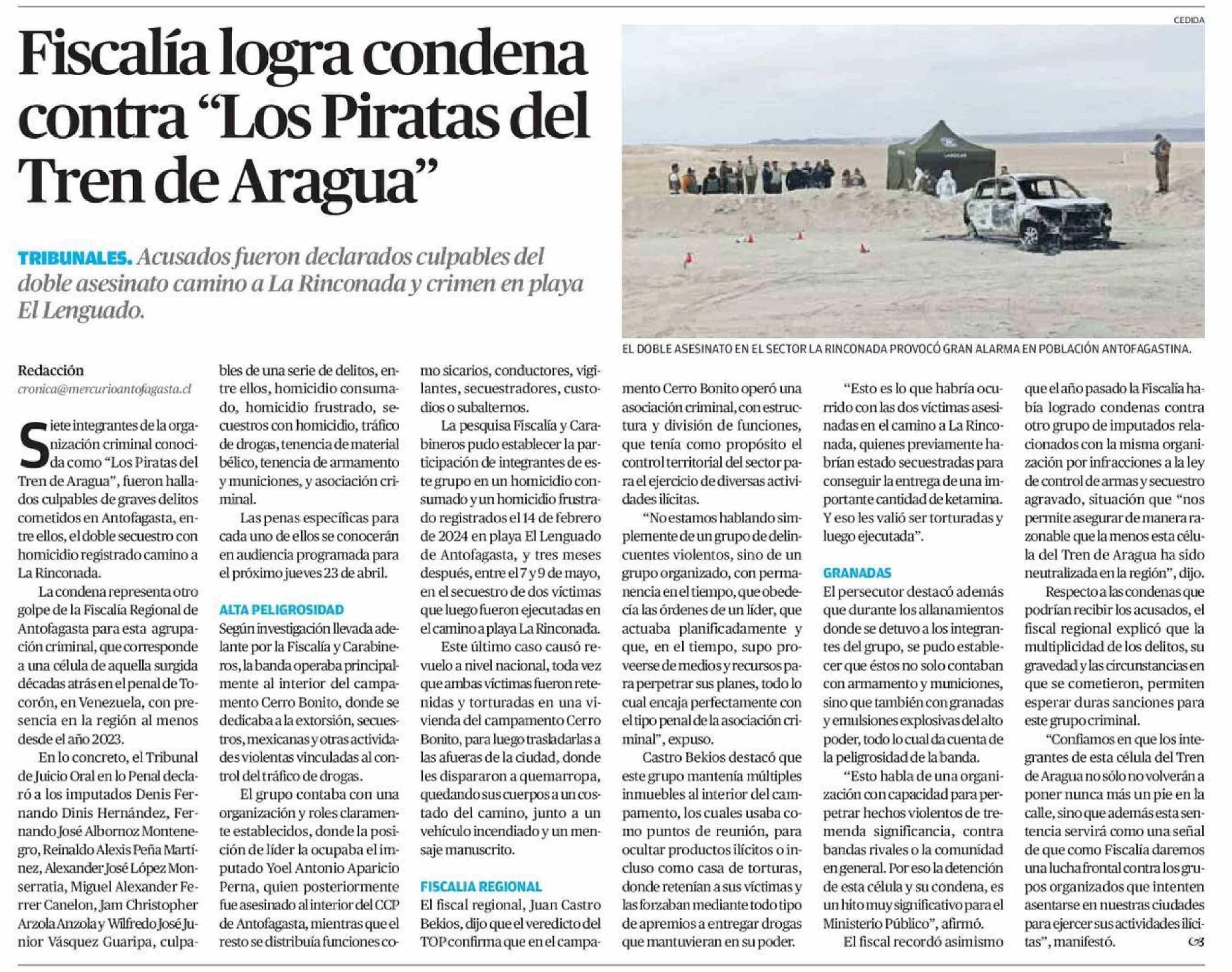 Fiscalía logra condena contra "Los Piratas del Tren de Aragua"