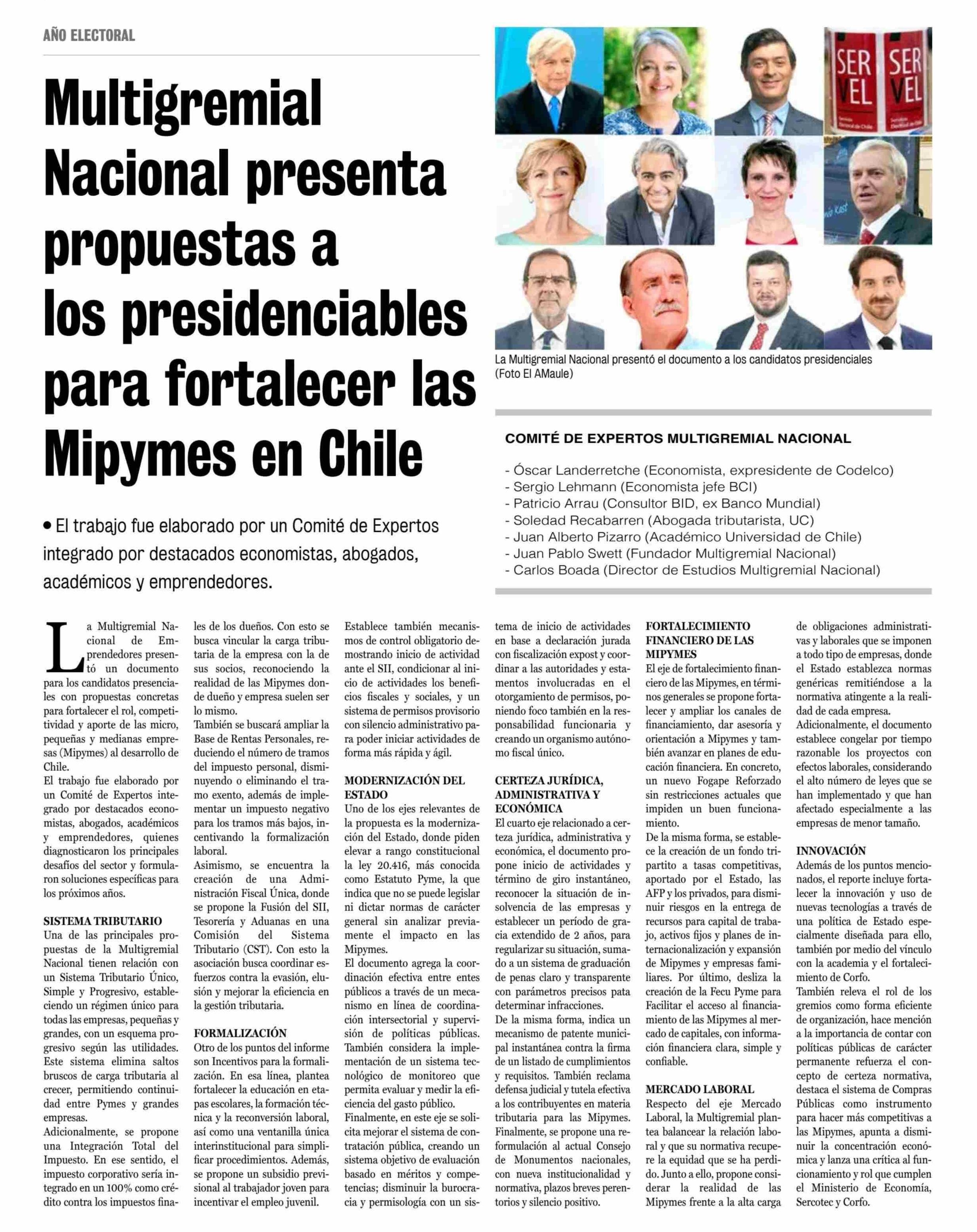 Multigremial Nacional presenta propuestas a los presidenciables para fortalecer las Mipymes en Chile