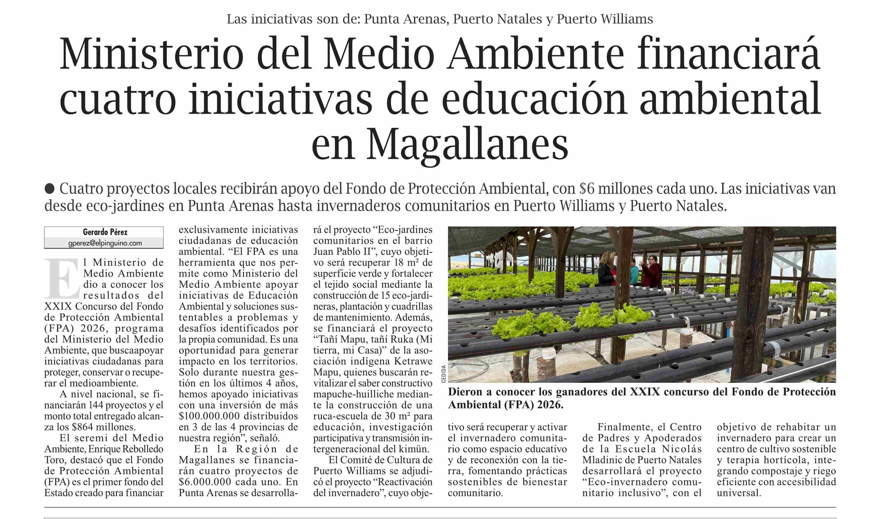 Ministerio del Medio Ambiente financiará cuatro iniciativas de educación ambiental en Magallanes