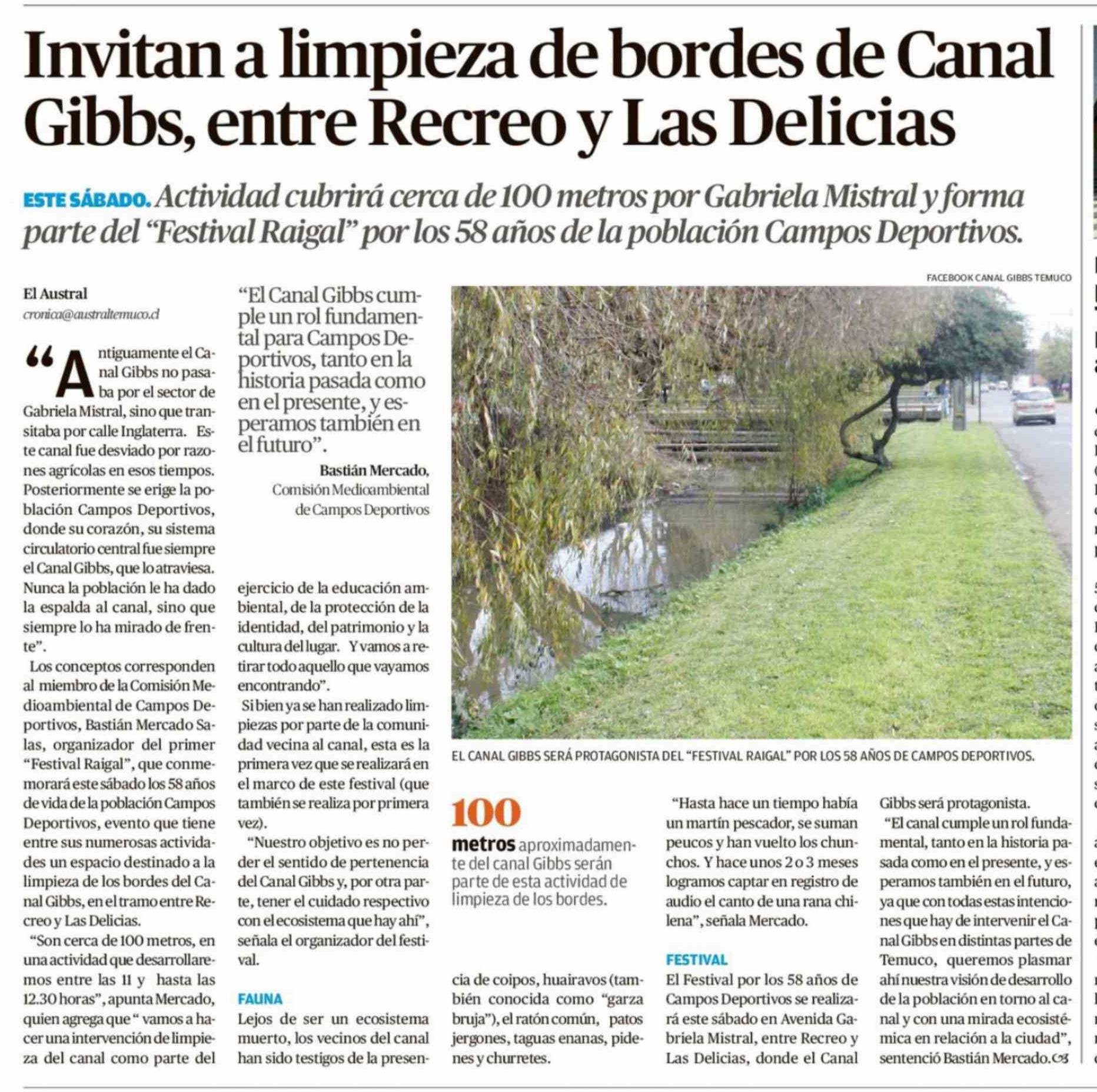 Invitan a limpieza de bordes de Canal Gibbs, entre Recreo y Las Delicias