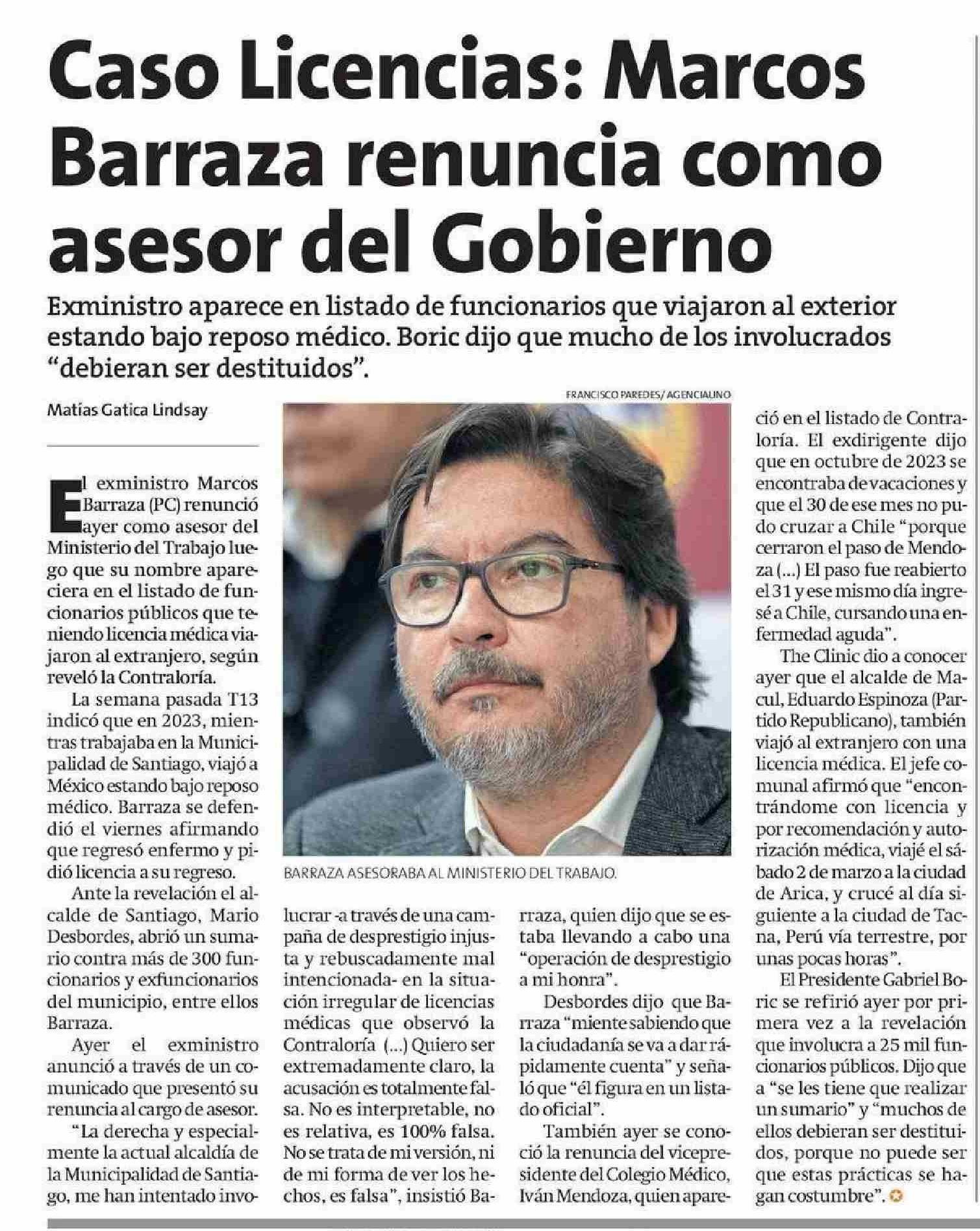 Caso Licencias: Marcos Barraza renuncia como asesor del Gobierno