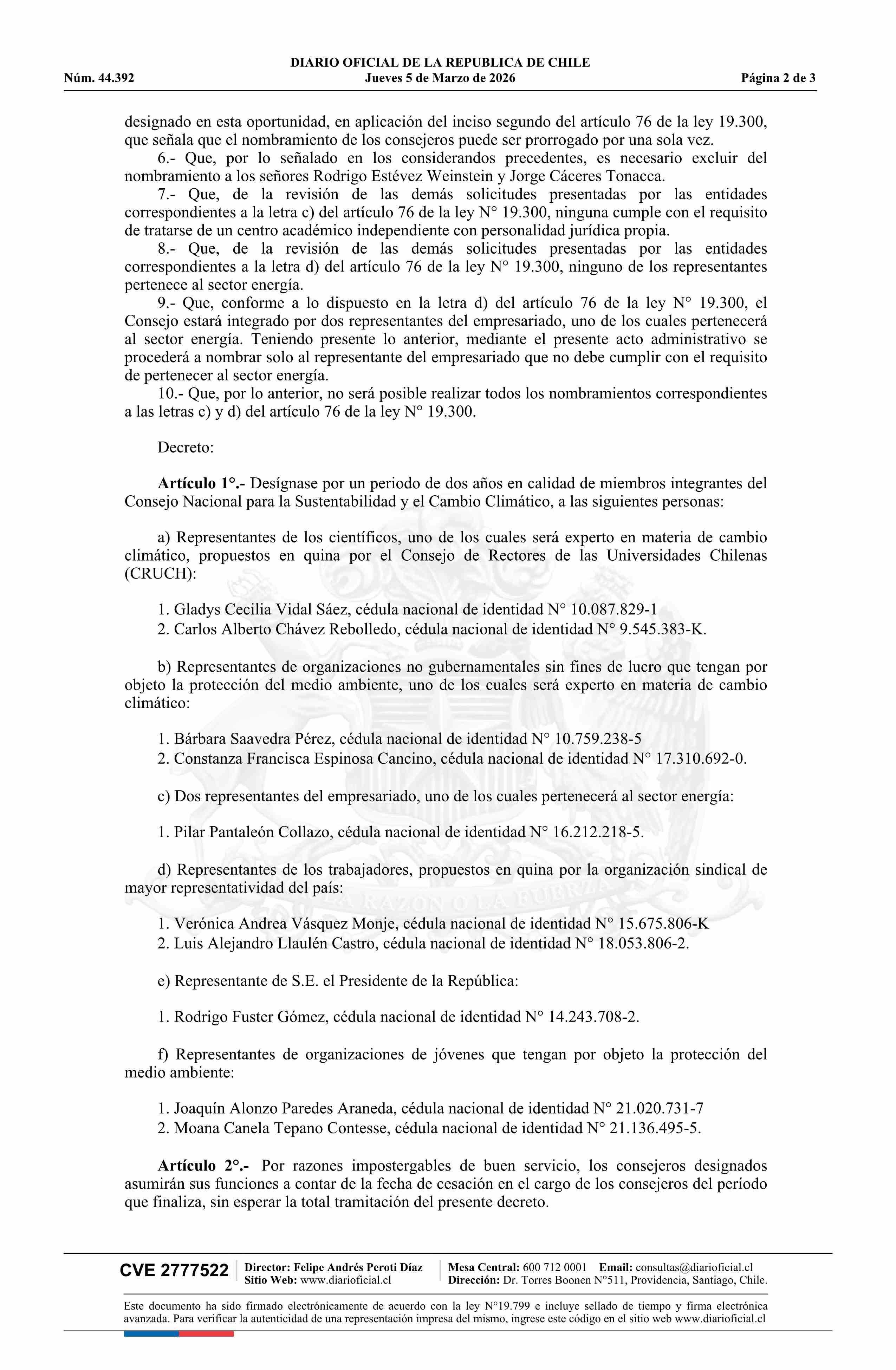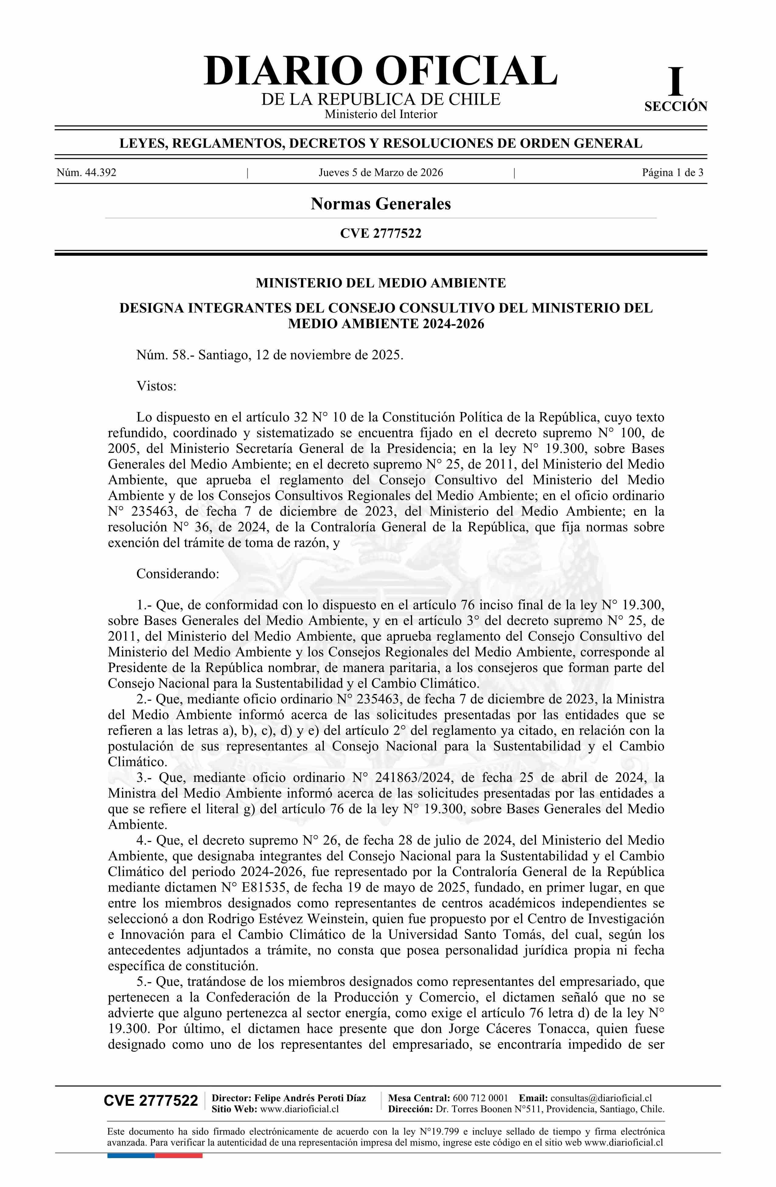 Título: Decreto número 58, de 2025.- Designa integrantes del Consejo Nacional para la Sustentabilidad y el Cambio Climático periodo 2024-2026