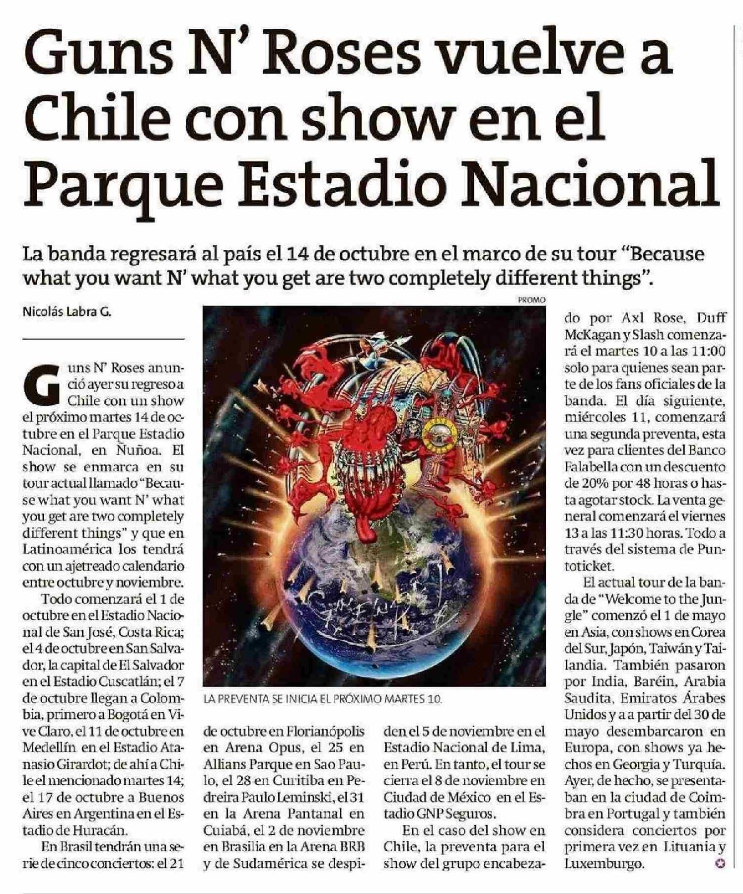 Guns N' Roses vuelve a Chile con show en el Parque Estadio Nacional