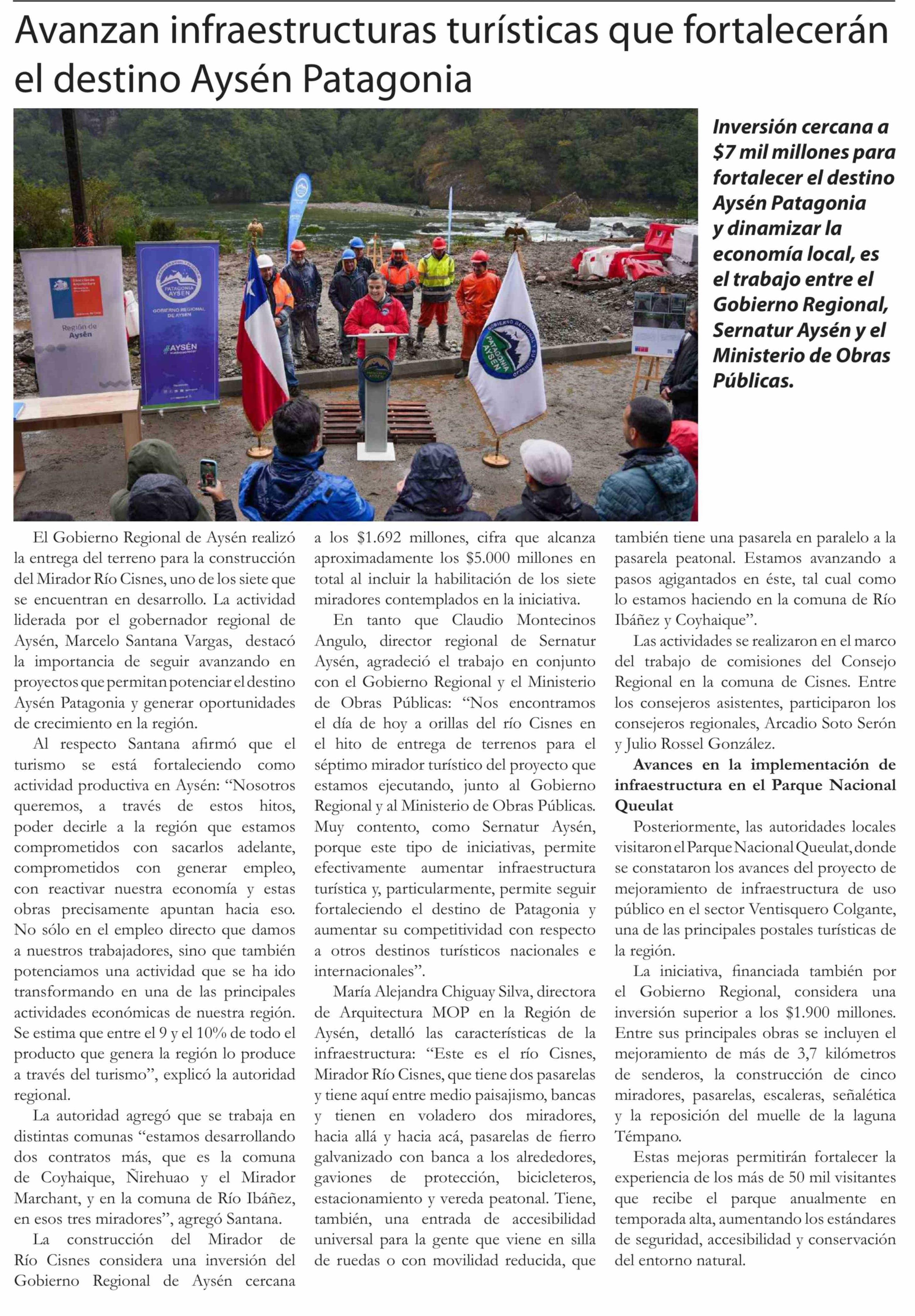 Avanzan infraestructuras turísticas que fortalecerán el destino Aysén Patagonia