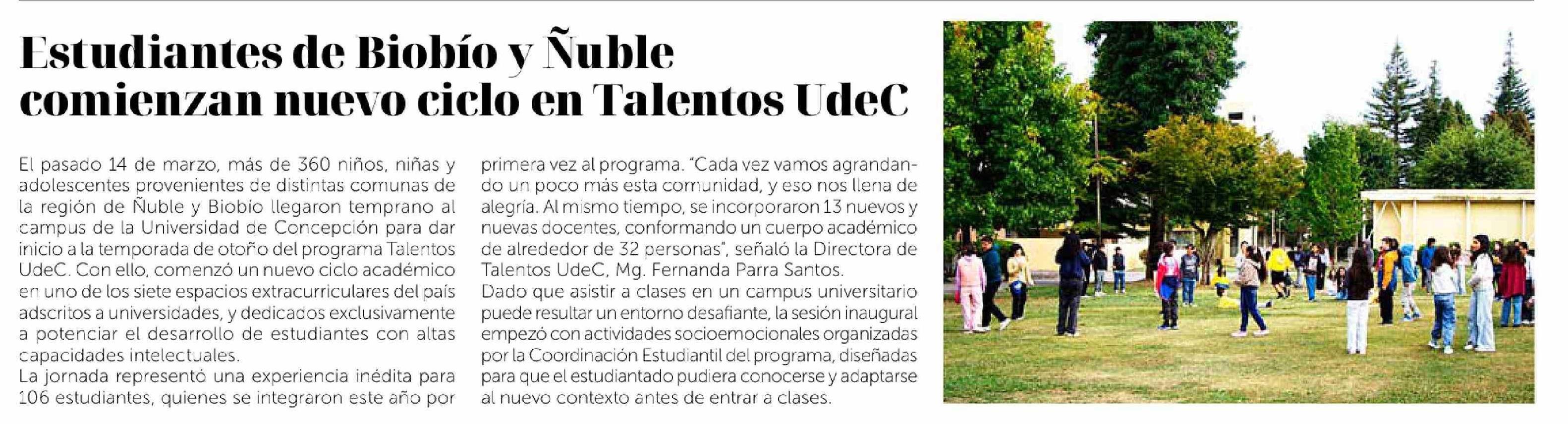 Estudiantes de Biobio y Ñuble comienzan nuevo ciclo en Talentos UdeC