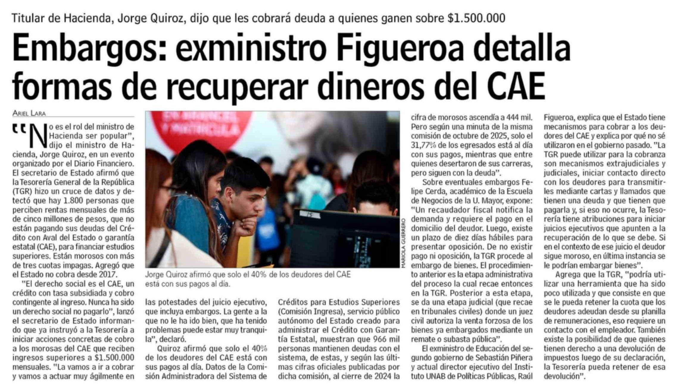 Embargos: exministro Figueroa detalla formas de recuperar dineros del CAE