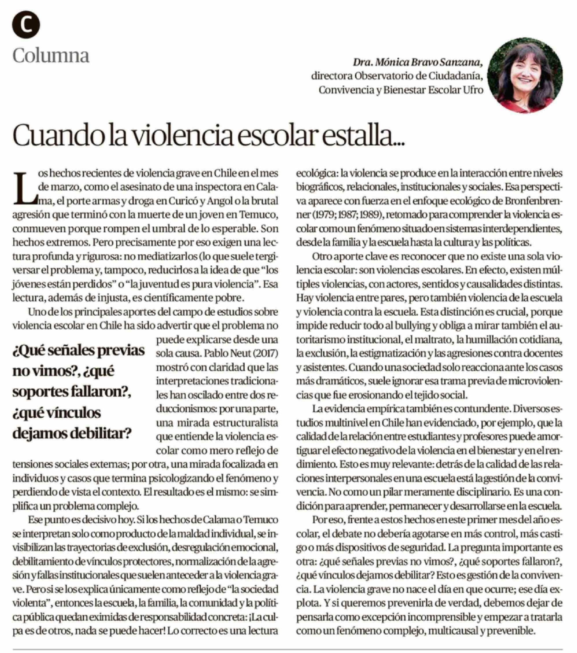 Columnas de Opinión: Cuando la violencia escolar estalla ...