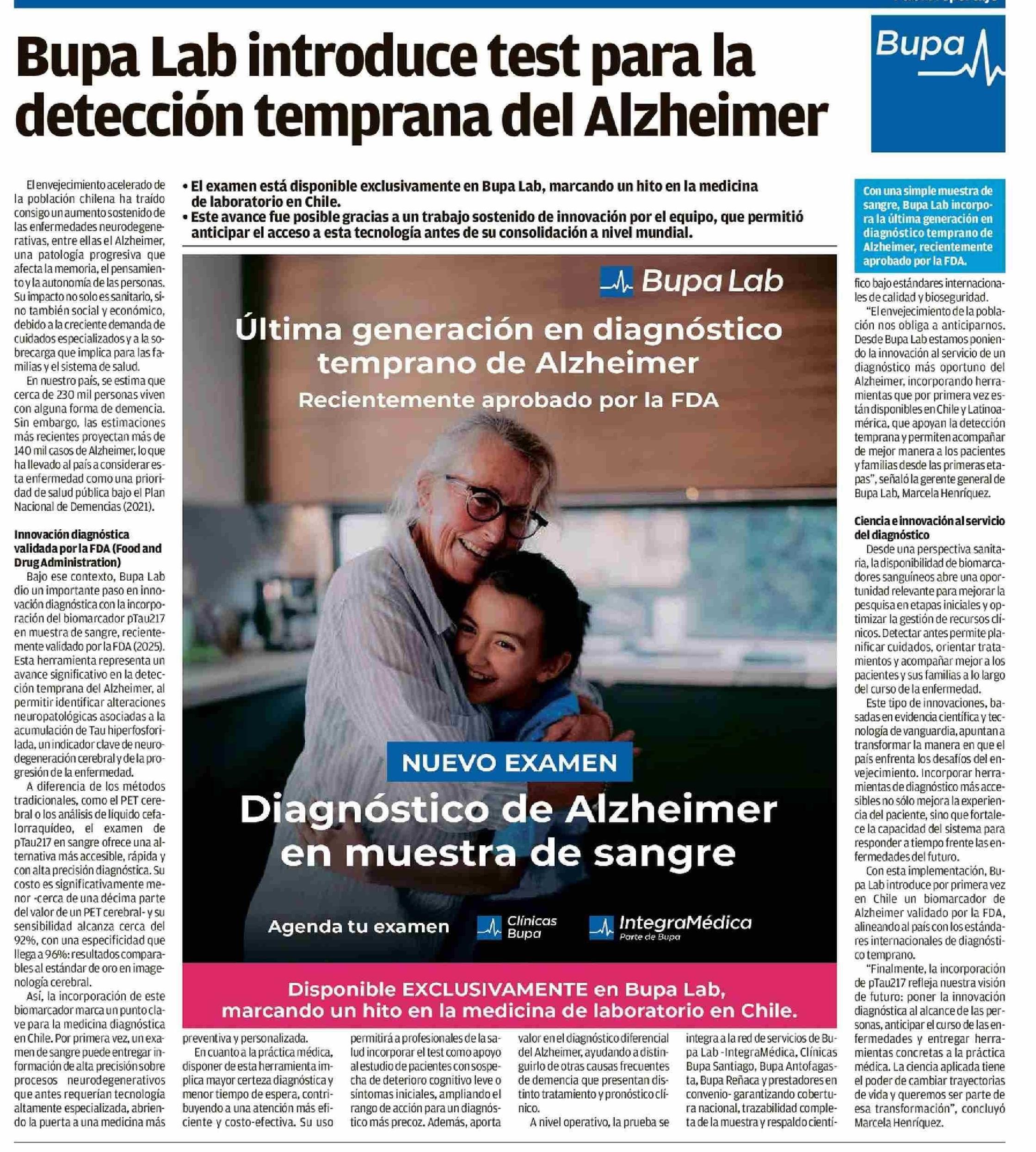 Bupa Lab introduce test para la detección temprana del Alzheimer