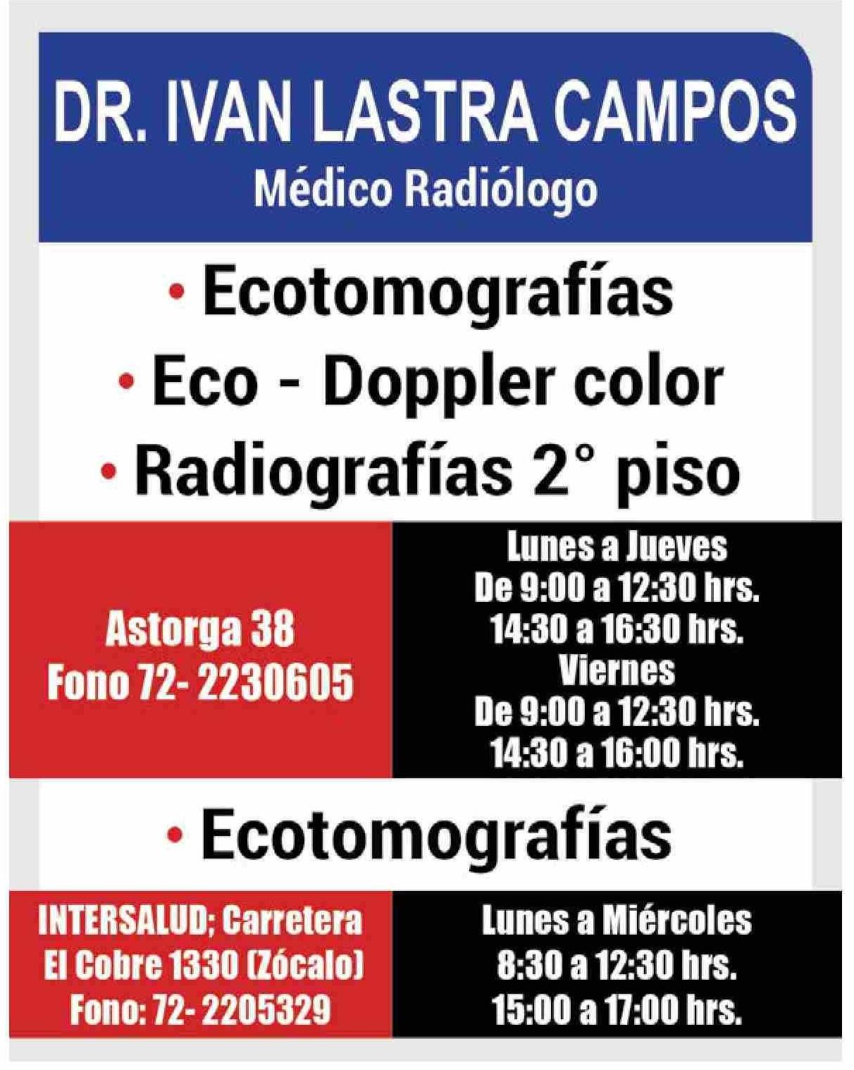 AVISO SALUD: DR. IVAN LASTRA CAMPOS Médico Radiólogo