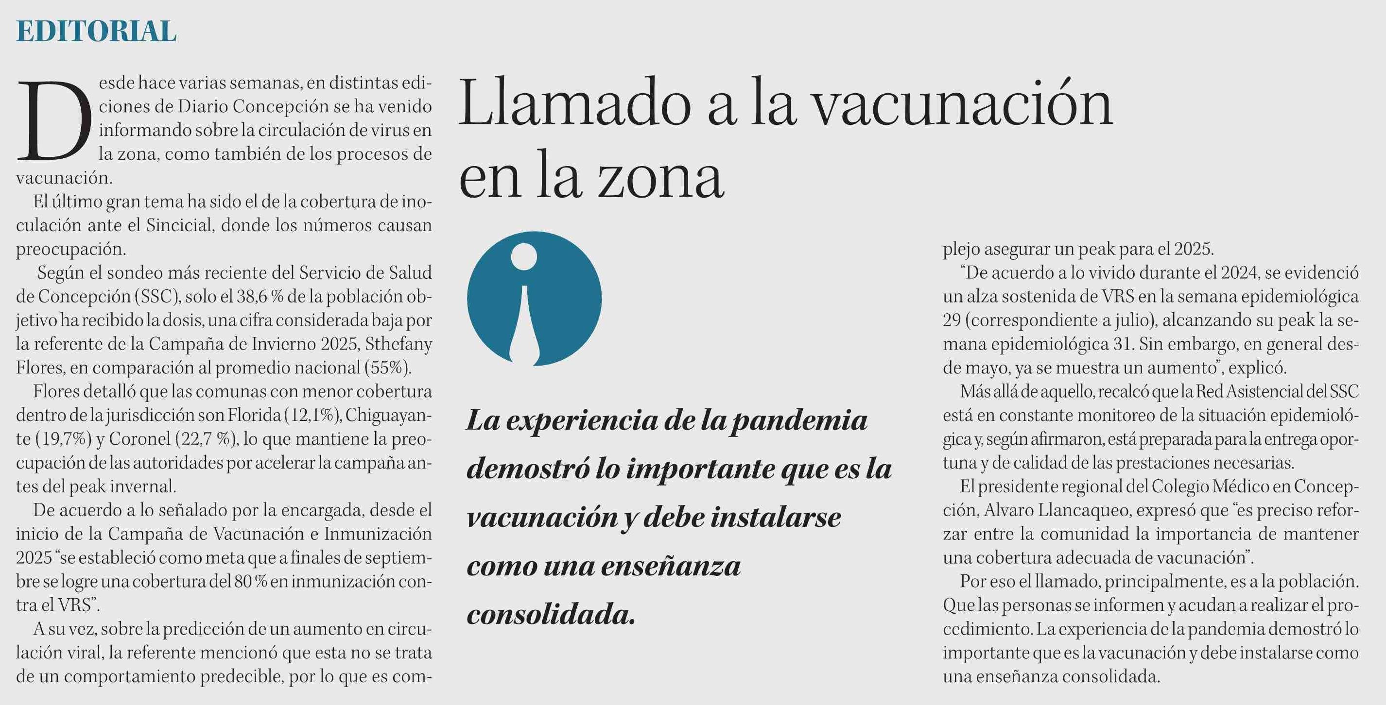 Editorial: Llamado a la vacunación en la zona