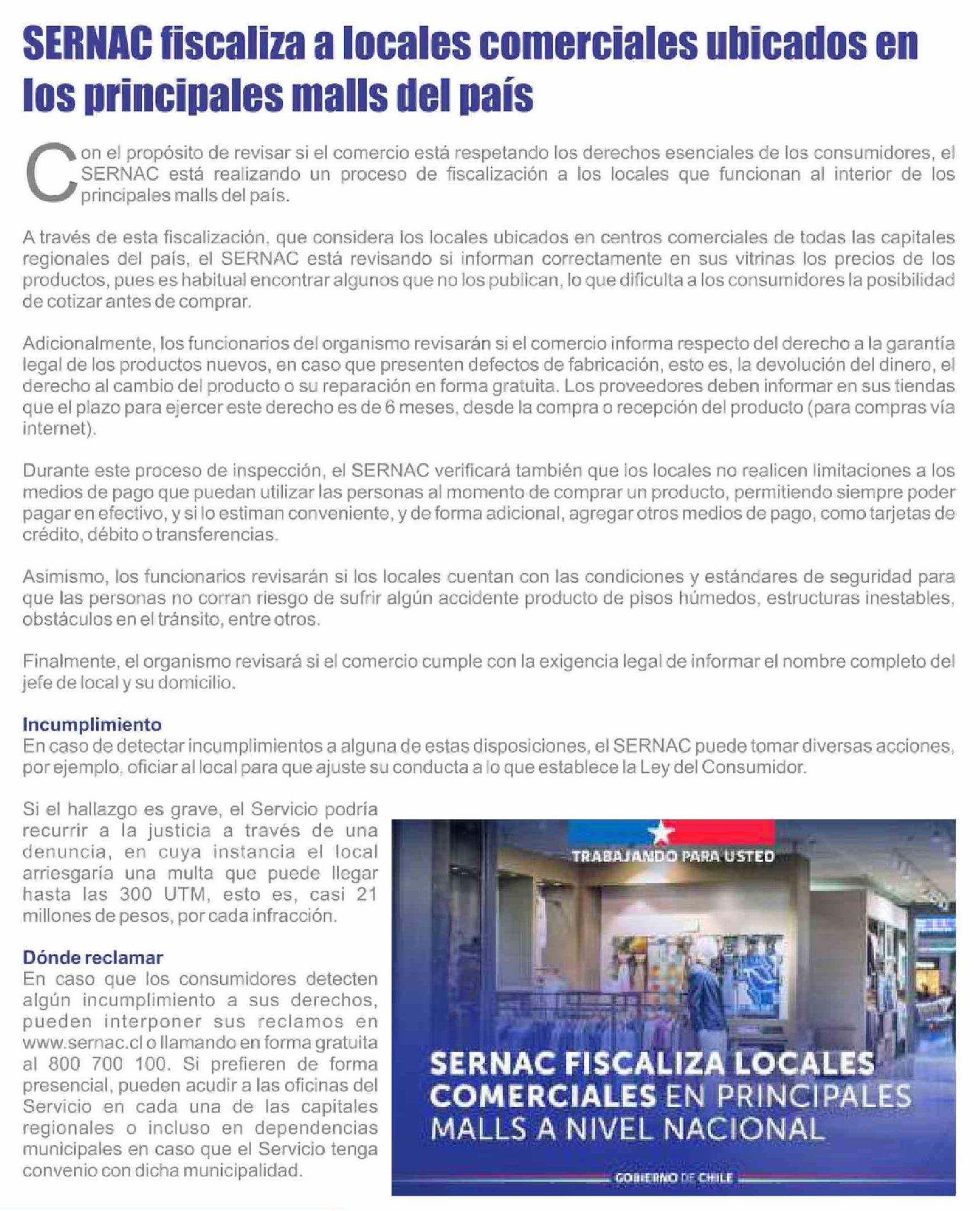 SERNAC fiscaliza a locales comerciales ubicados en los principales malls del país