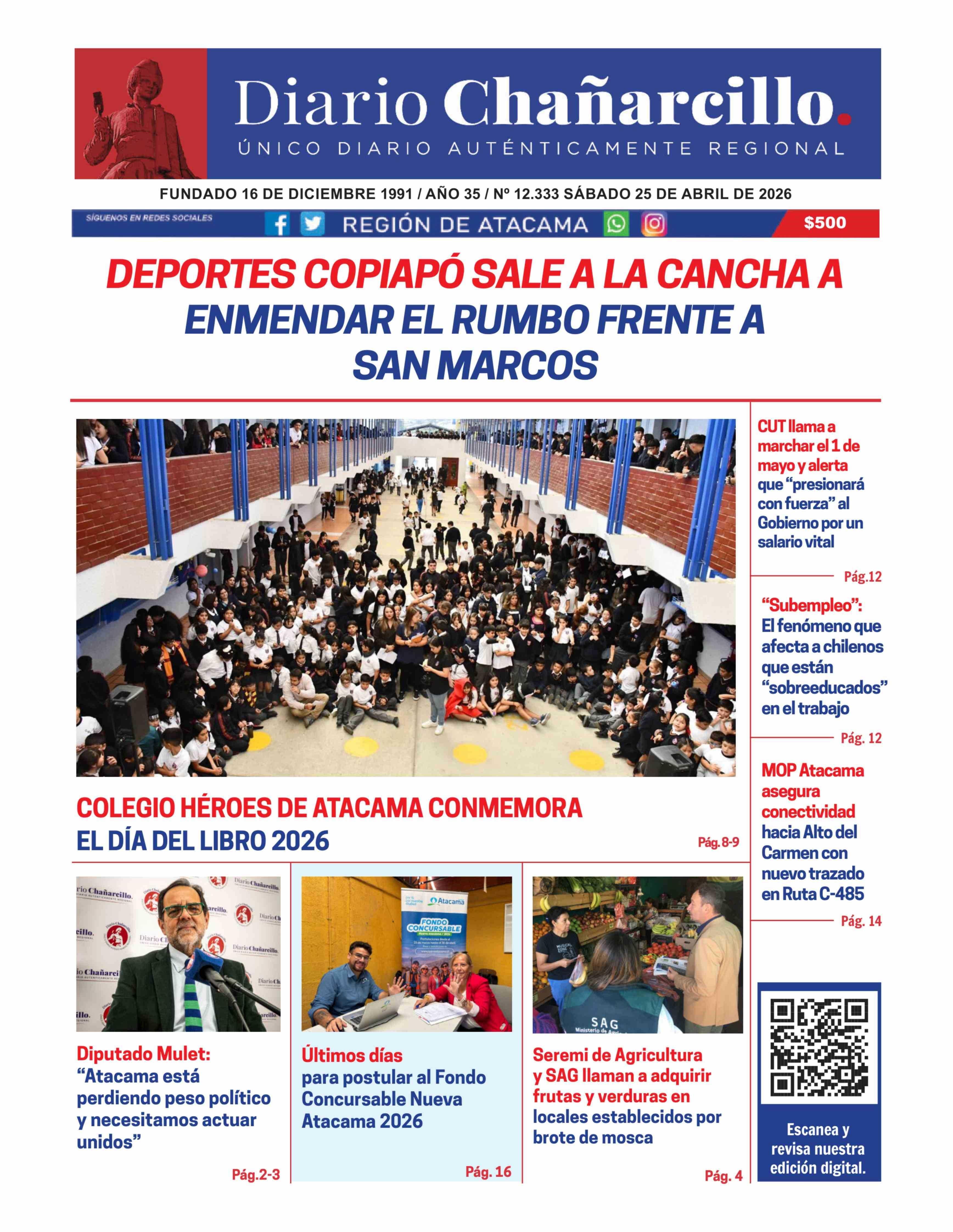 PORTADA DIARIO CHAÑARCILLO CHILE