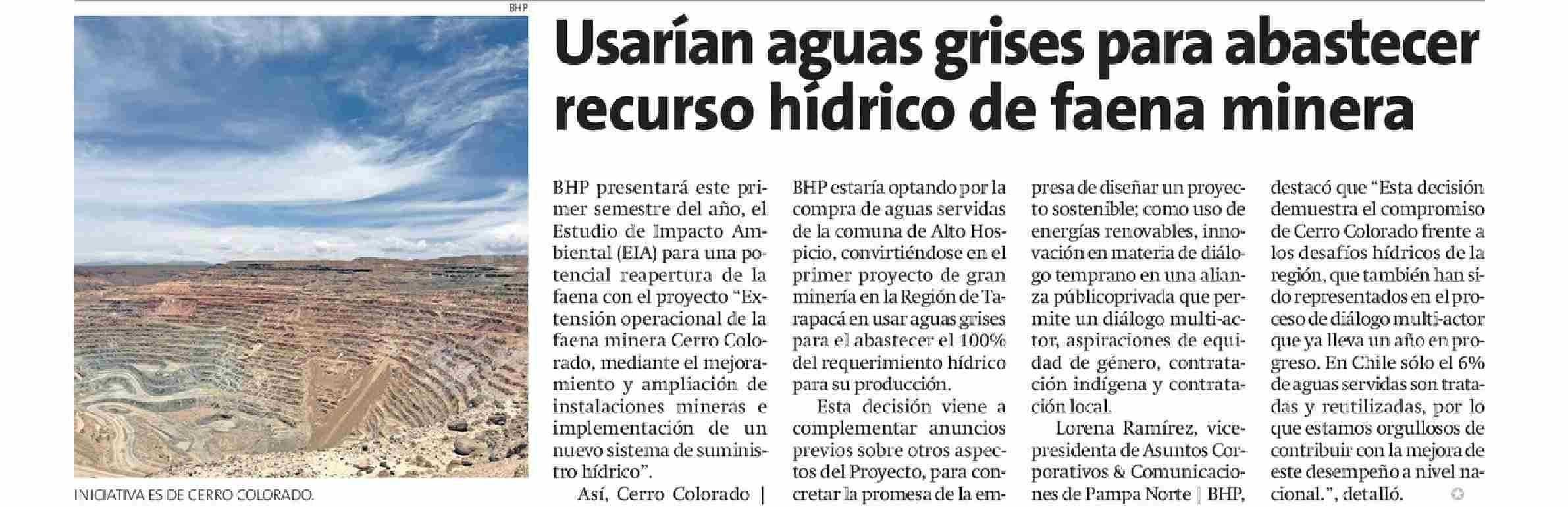 Usarian aguas grises para abastecer recurso hidrico de faena minera