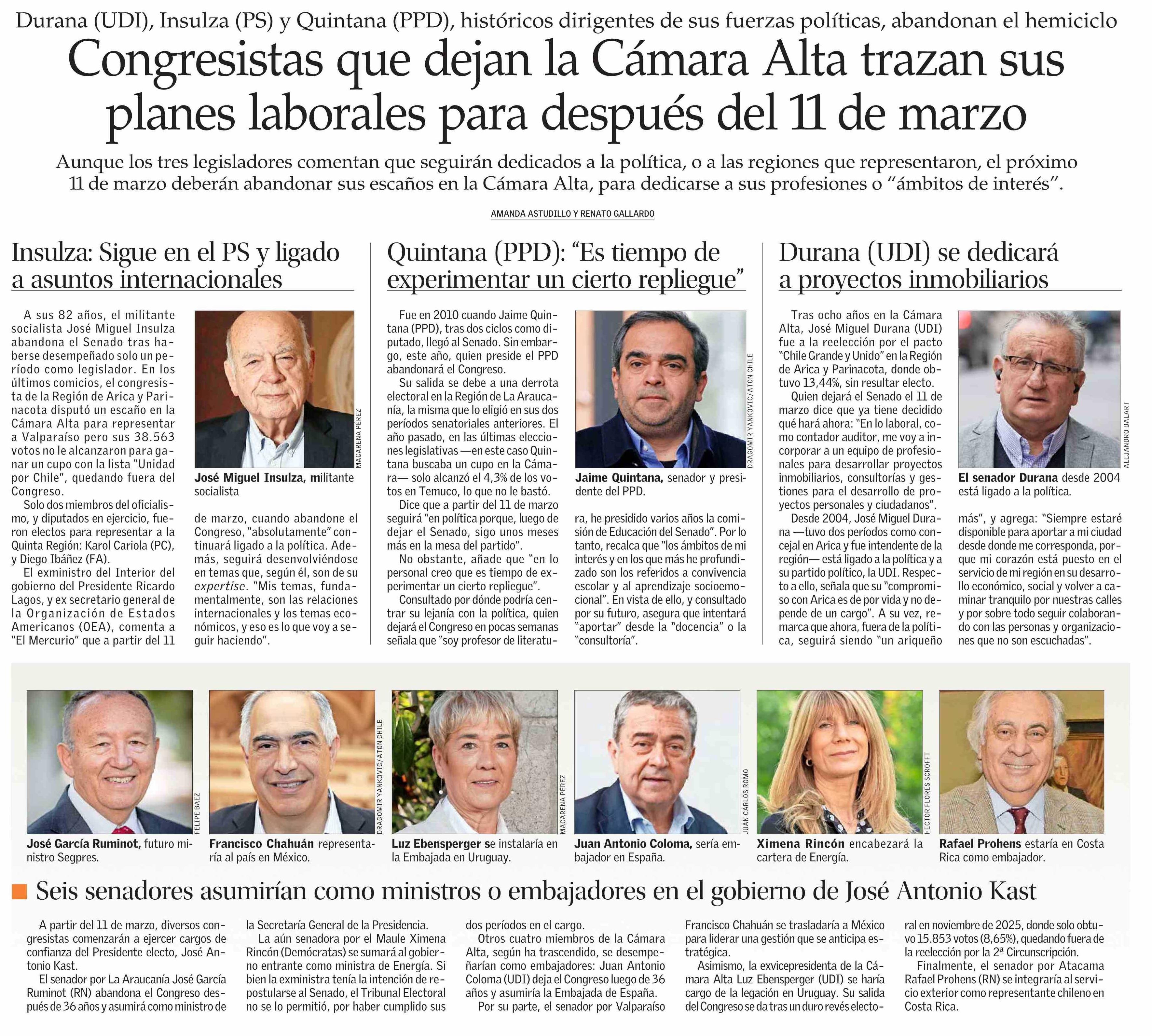 Congresistas que dejan la Cámara Alta trazan sus planes laborales para después del 11 de marzo
