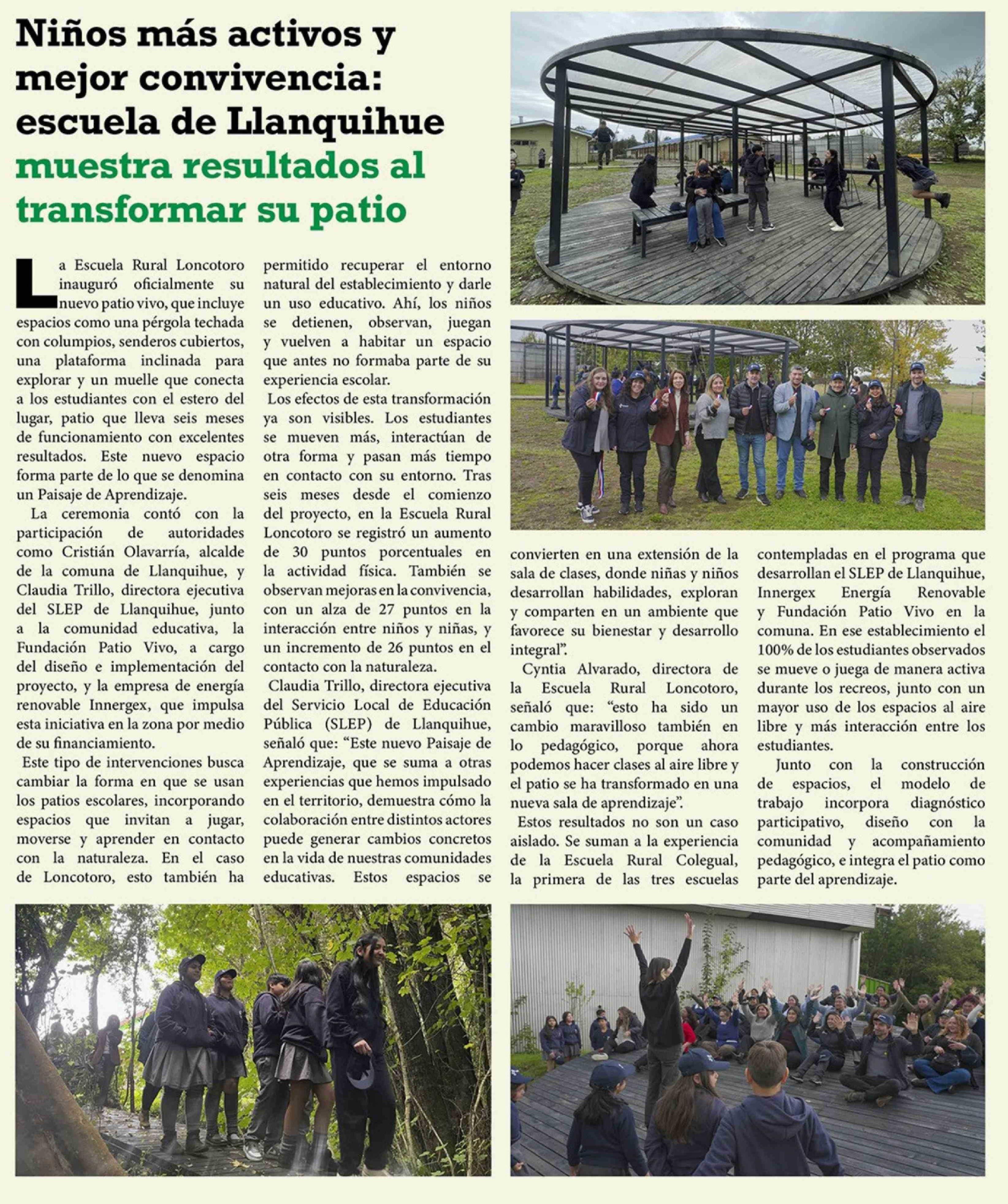 Niños más activos y mejor convivencia: escuela de Llanquihue muestra resultados al transformar su patio