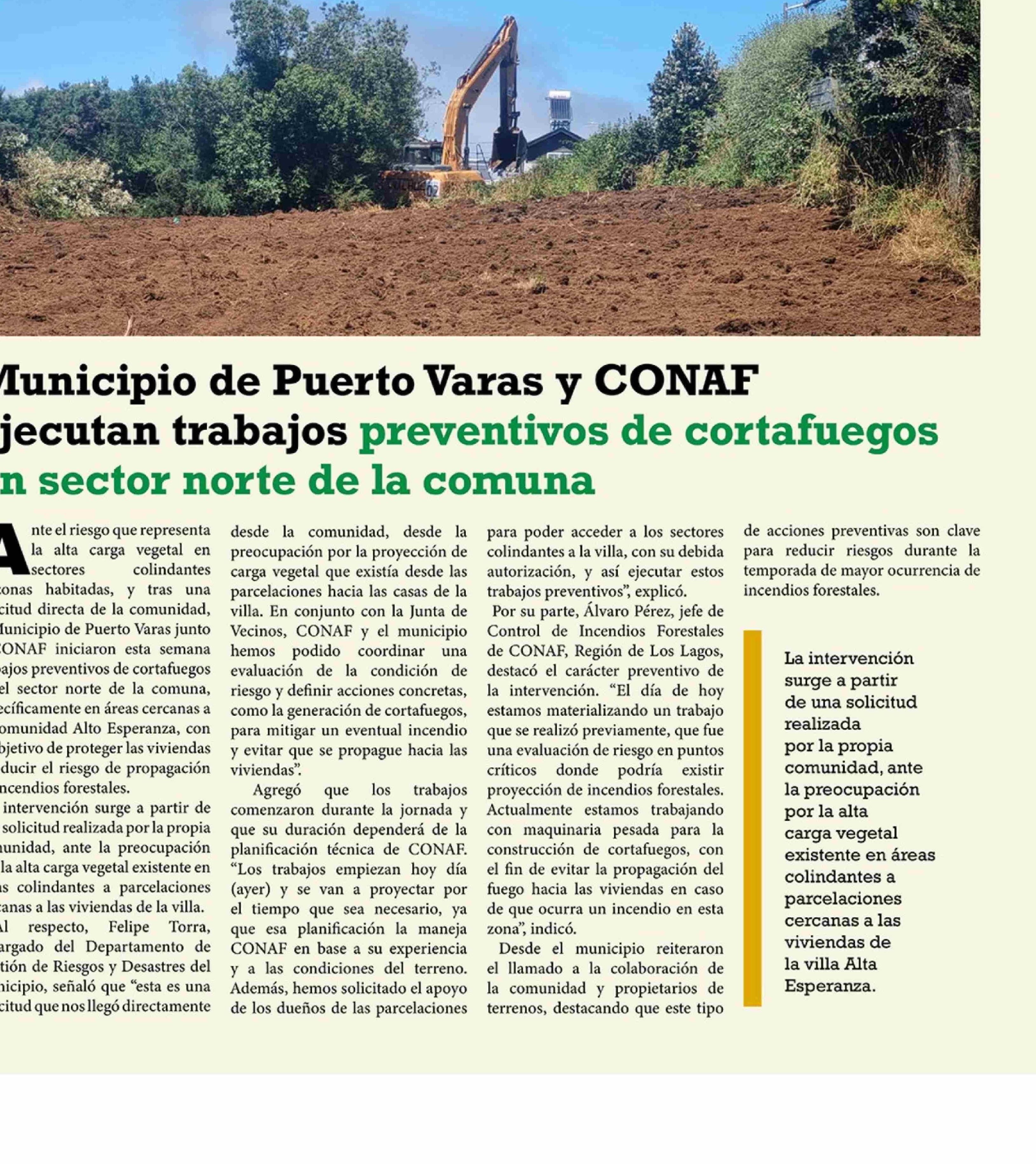 Municipio de Puerto Varas y CONAF ejecutan trabajos preventivos de cortafuegos en sector norte de la comuna