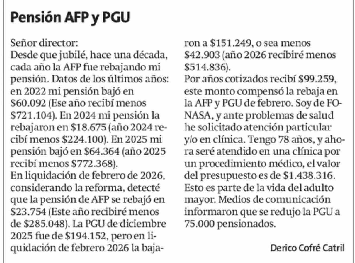 Columnas de Opinión: Pensión AFP y PGU