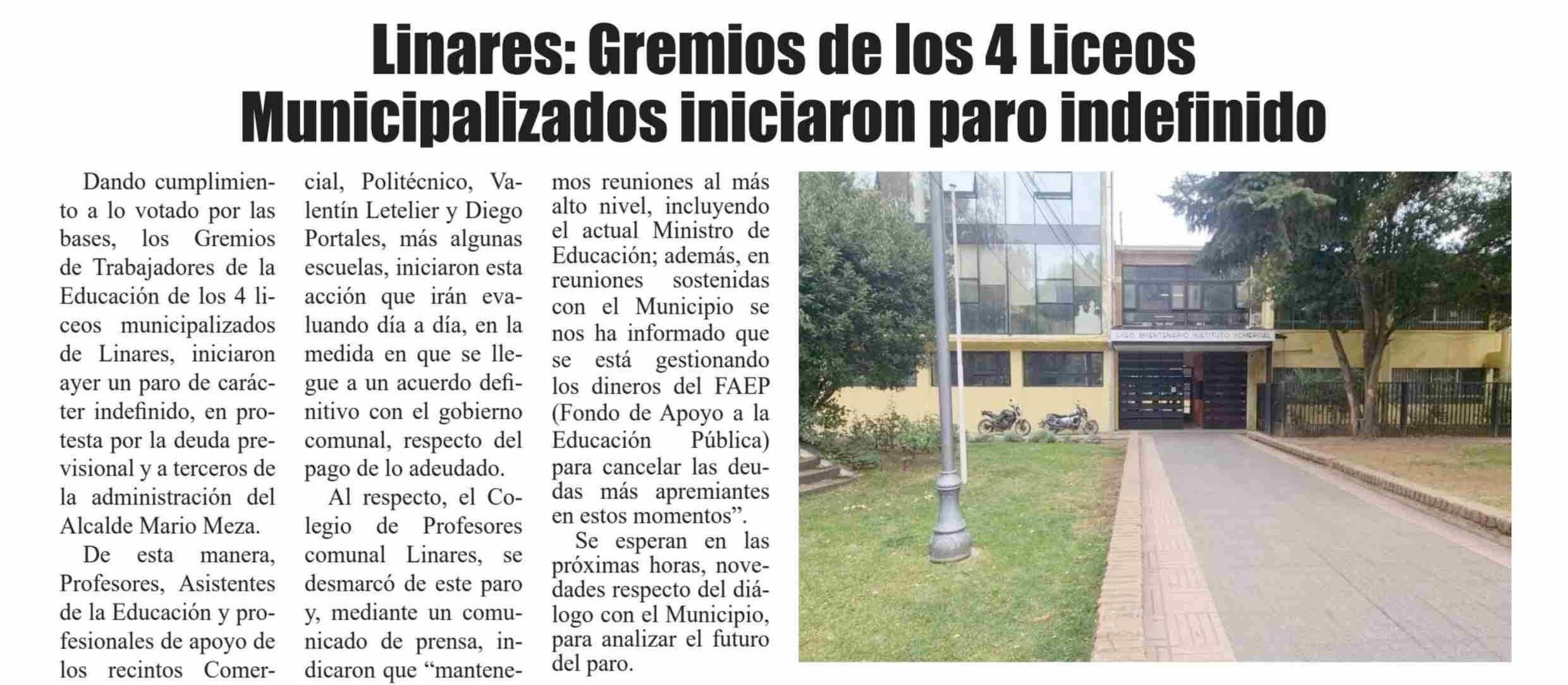 Linares: Gremios ide los 4 Liceos Municipalizados iniciaron paro indefinido