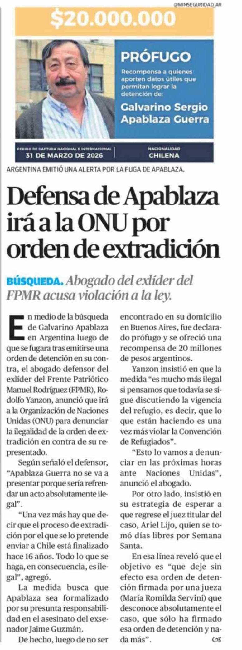 Defensa de Apablaza irá a la ONU por orden de extradición