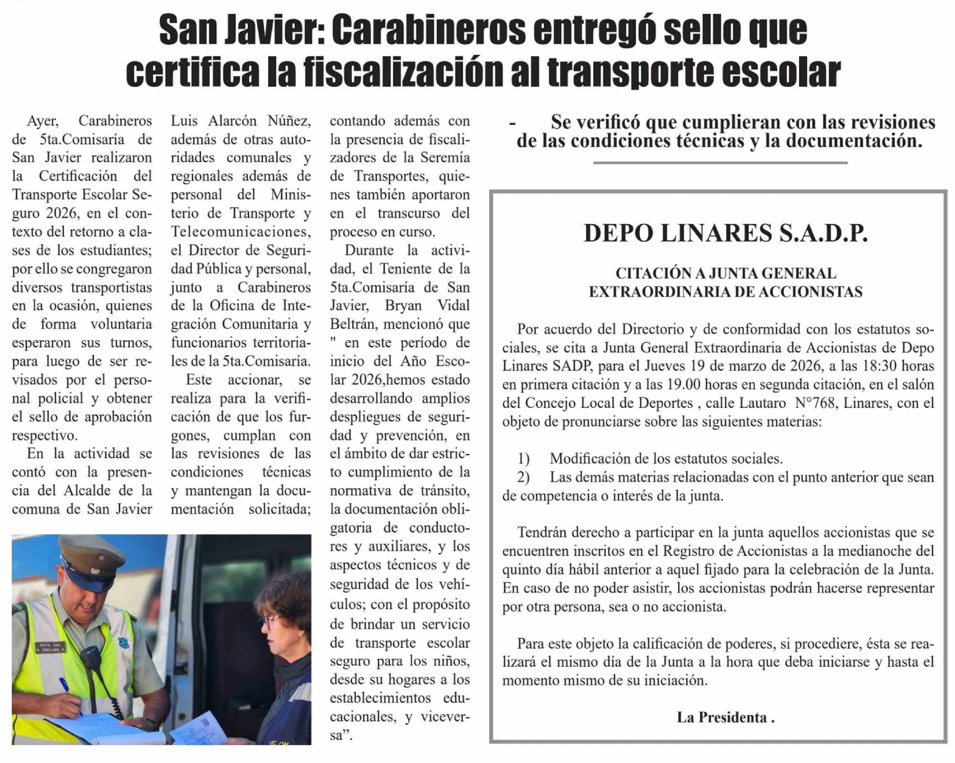 San Javier: Carabineros entregó sello que certifica la fiscalización al transporte escolar