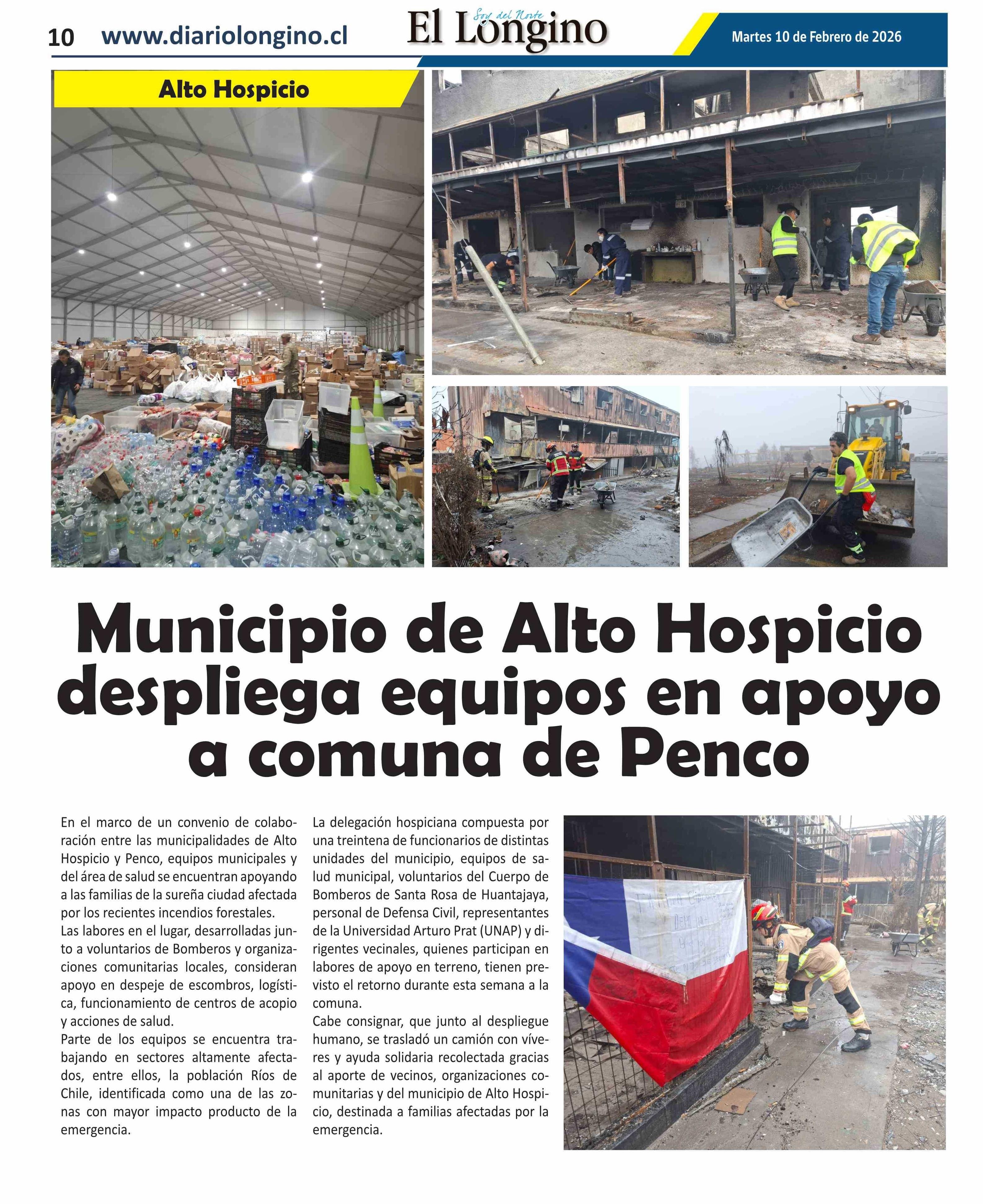 Municipio de Alto Hospicio despliega equipos en apoyo a comuna de Penco