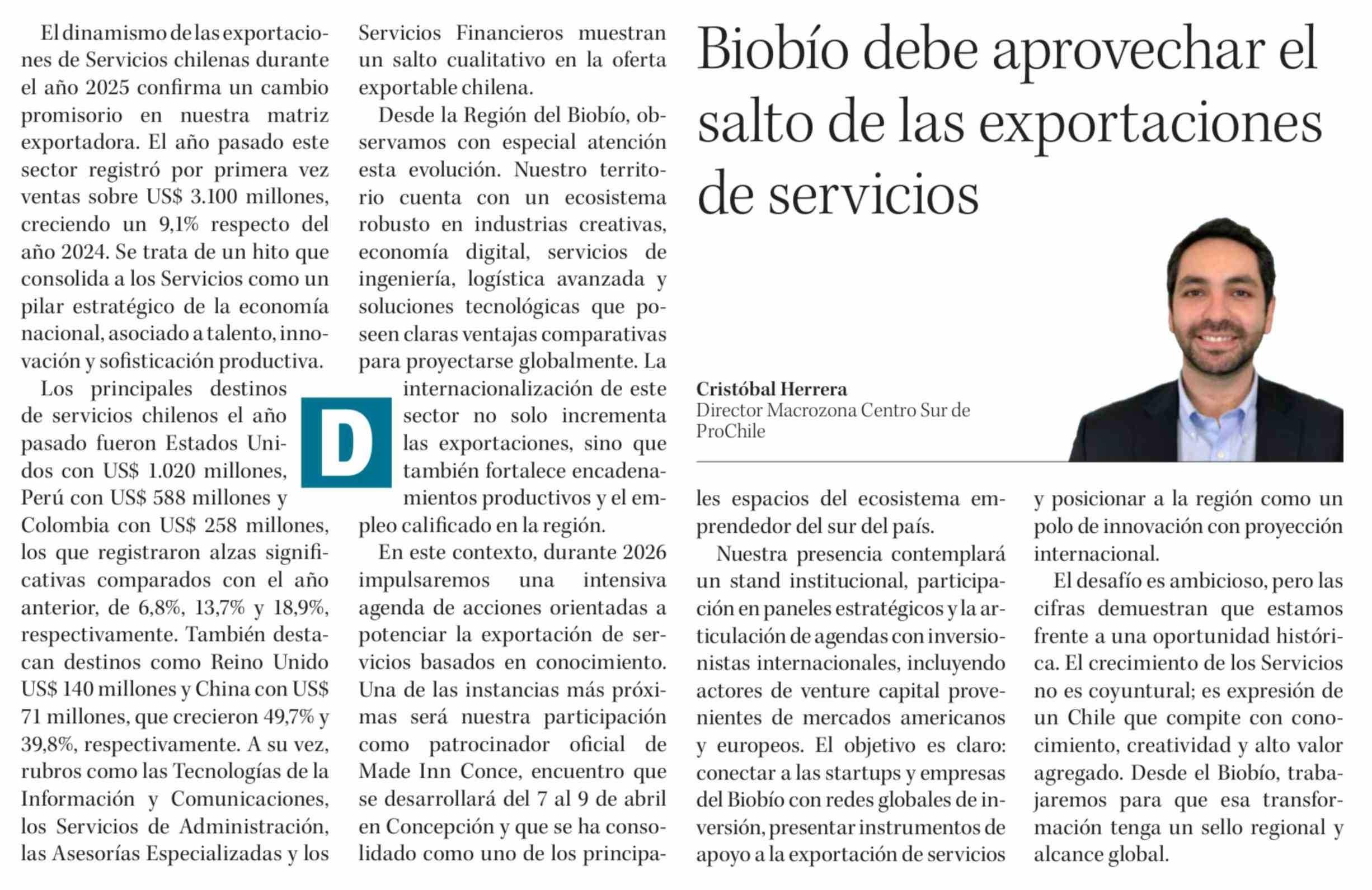 Columnas de Opinión: Biobío debe aprovechar el salto de las exportaciones de servicios