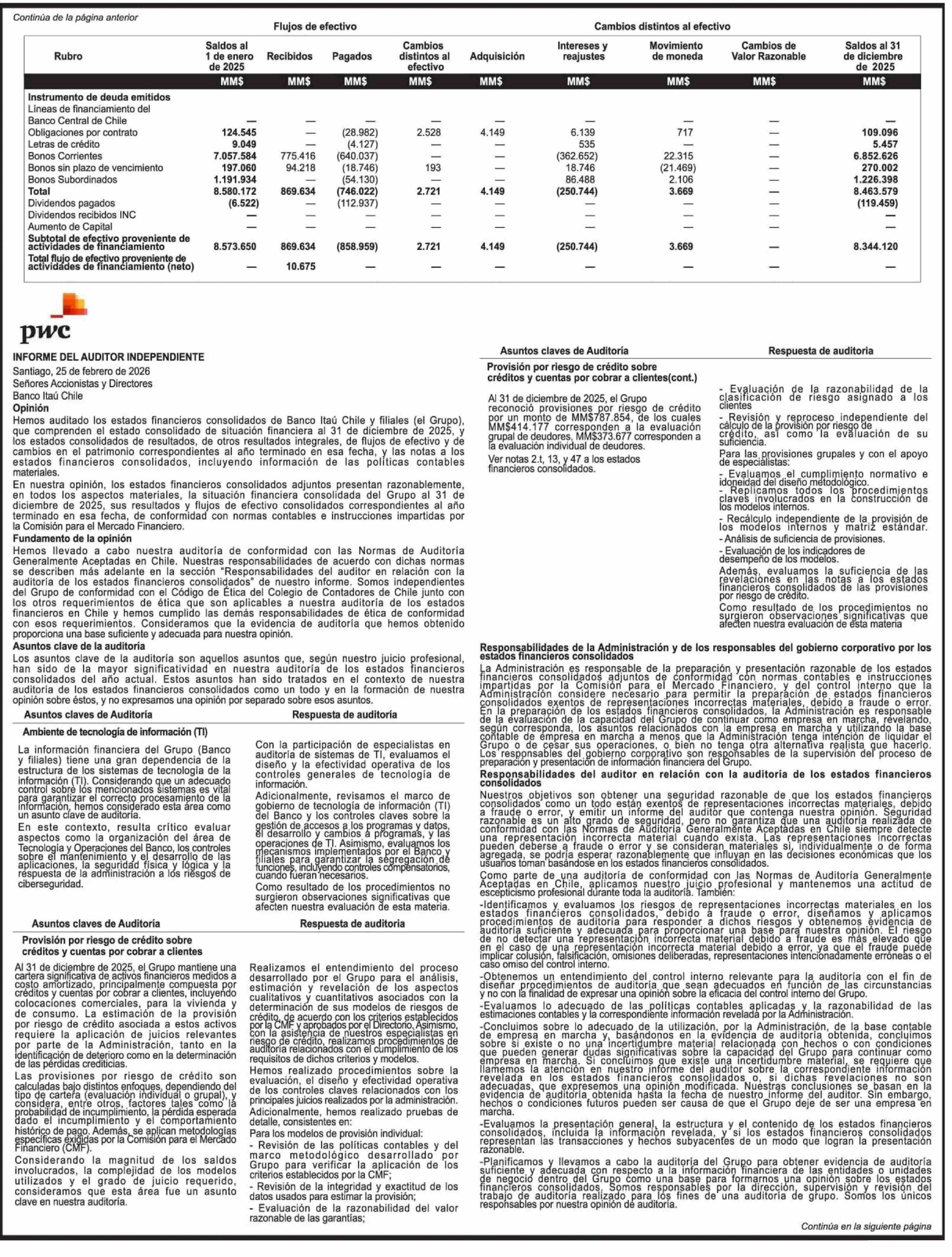 Título: Extractos: Itaú Chile y filiales - Estados Financieros Consolidados