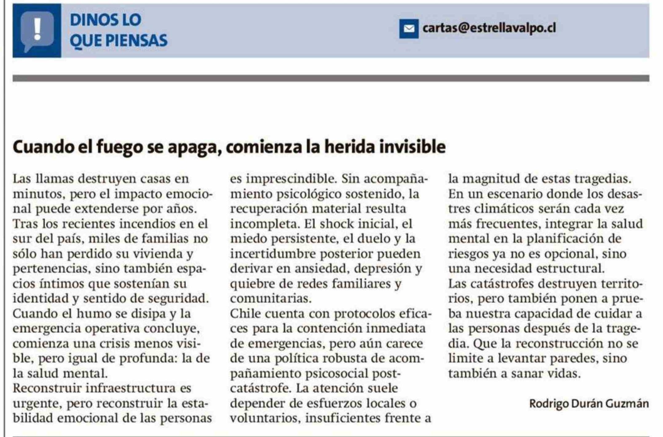 Cartas: Cuando el fuego se apaga, comienza la herida invisible