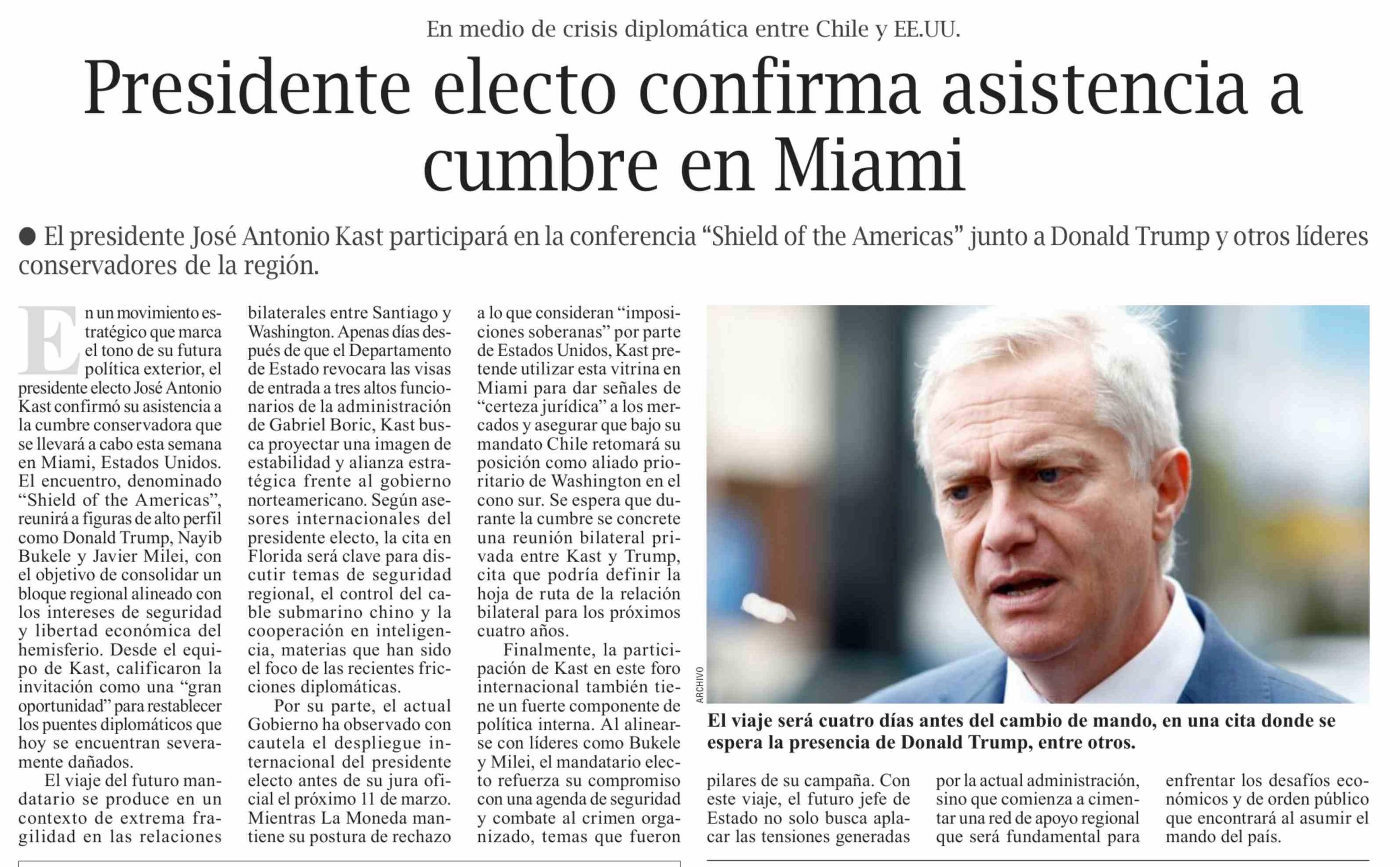Presidente electo confirma asistencia a cumbre en Miami