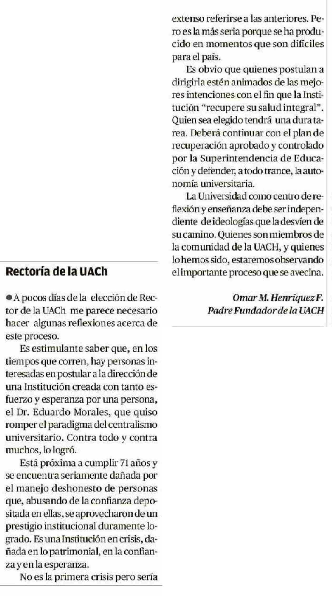 CARTAS: Rectoría de la UACh