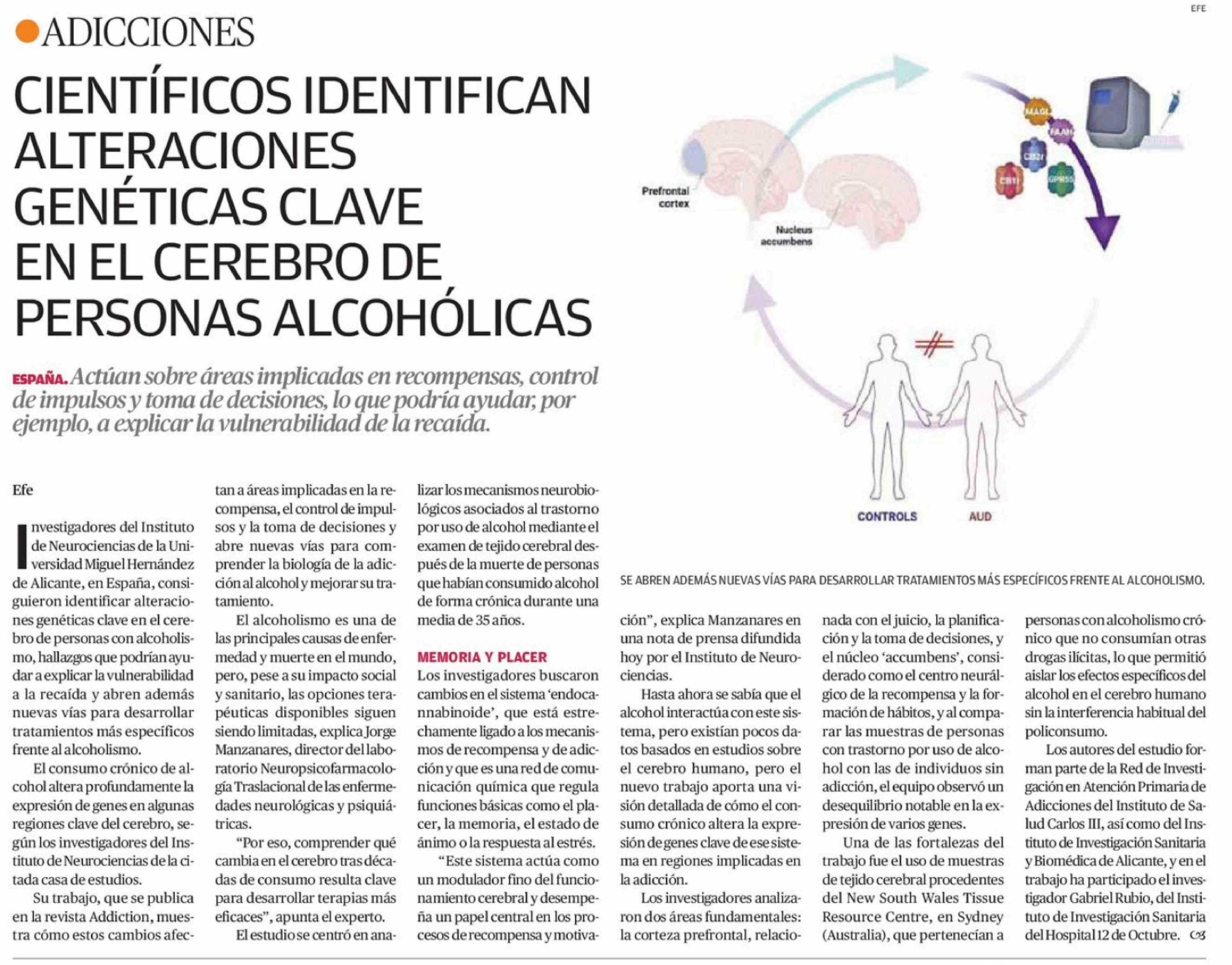 CIENTÍFICOS IDENTIFICAN ALTERACIONES GENÉTICAS CLAVE EN EL CEREBRO DE PERSONAS ALCOHÓLICAS