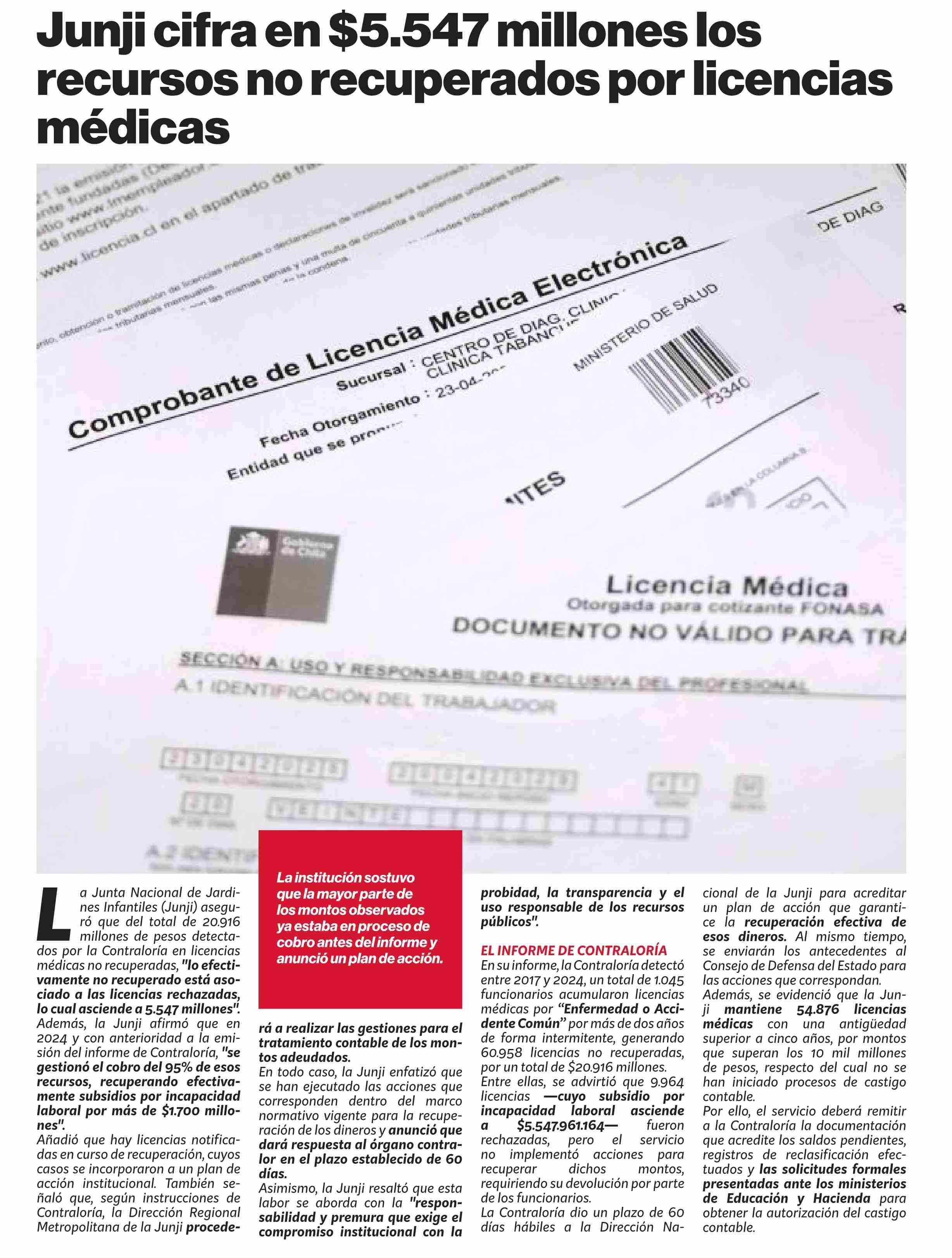 Junji cifra en $5.547 millones los no recuperados por licencias médicas